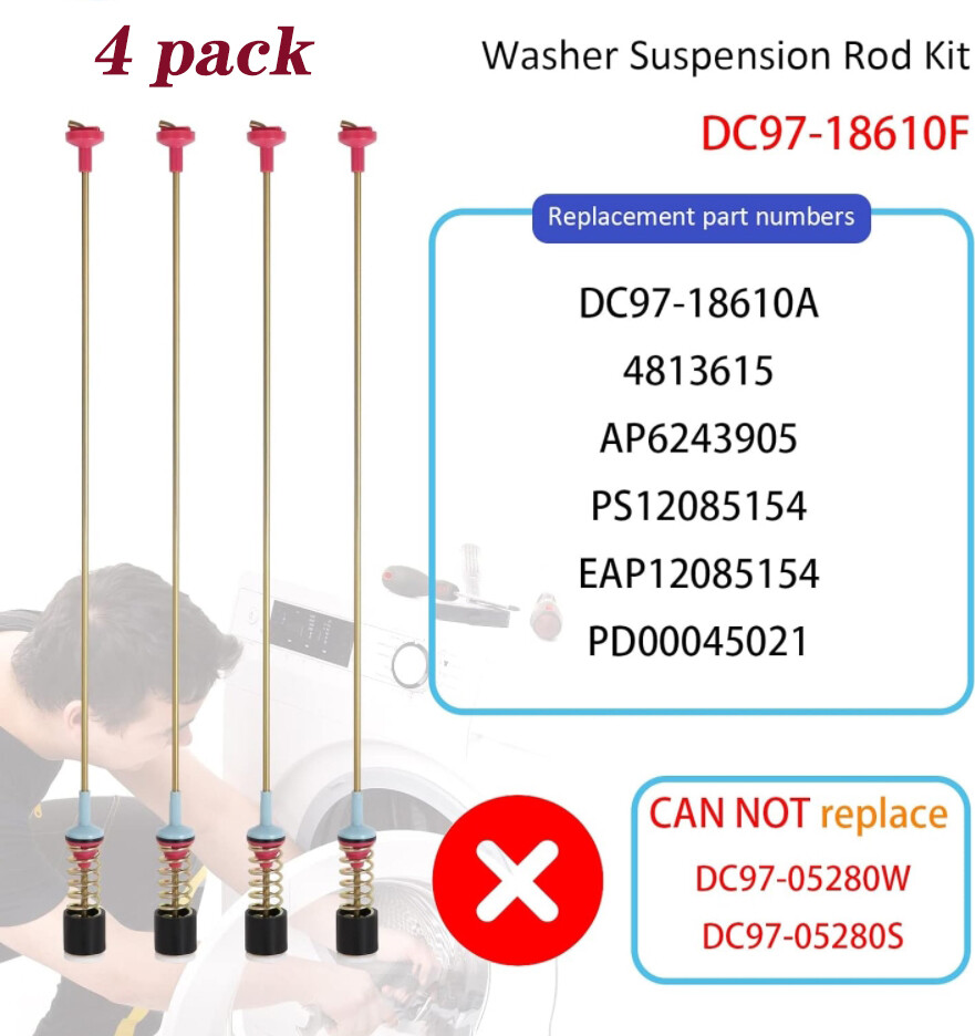 DC97-18610F Destriction: The Washer Suspension Rod DC97-18610F is an integral component of the washing machine's suspension system. It consists of a durable metal rod that connects the outer tub to the inner tub. Its primary function is to minimize vibration and noise during the spin cycle. Additionally, it ensures the stability and balance of the inner tub while the washer is in operation. Crafted from high-quality stainless steel, this suspension rod is built to withstand years of use. If your washer is experiencing excessive noise or vibrations, it may be necessary to consider replacing this crucial part. Feature: Automotiveparts_aa New Parts, Fast Fix, Revive Your Washer Now! Washer Suspension Rod Kit FitsFor Samsung Whirlpool Maytag Kenmore DC97-18610F DC97-18610F Destriction: The Washer Suspension Rod DC97-18610F is an integral component of the washing machine's suspension system. It consists of a durable metal rod that connects the outer tub to the inner tub. Its primary function is to minimize vibration and noise during the spin cycle. Additionally, it ensures the stability and balance of the inner tub while the washer is in operation. Crafted from high-quality stainless steel, this suspension rod is built to withstand years of use. If your washer is experiencing excessive noise or vibrations, it may be necessary to consider replacing this crucial part. Feature: When to replace it: 4 x W11130356 Suspension Bar Kit, approximately 28.35 inches long, supports the washer tub and stabilizes it during unbalanced loads, allowing the washer tub to move while helping to minimize vibration in spin mode. If your washer loses balance and vibrates with every load, this suspension kit can do the trick, and if one or more hanger bars break, the washer will vibrate or shake. This suspension bar helps dampen the movement of the washer tub. What's In The Package: W11130356 Suspension Bar Kit Includes 4 Rods, W11130356 Suspension Bar Kit is compatible with most Whirlpool Maytag, kenmore washing machine. Replaces Part numbers: Fits Whirlpool washers: 7MWTW8500EC0,7MWTW8500EC1,7MWTW8500EC2 WTW8000DW0,WTW8000DW1,WTW8000DW2,WTW8000DW3,WTW8000DW4,WTW8000DW5,WTW8040DW0,WTW8040DW1,WTW8040DW2,WTW8040DW3,WTW8040DW4,WTW8500DC0,WTW8500DC1,WTW8500DC2,WTW8500DC3,WTW8500DC4,WTW8500DC5,WTW8500DC6,WTW8500DR0,WTW8500DR1,WTW8500DR2,WTW8500DR3,WTW8500DR4,WTW8500DR5,WTW8500DW0,WTW8500DW1,WTW8500DW2,WTW8500DW3,WTW8500DW4,WTW8500DW5,WTW8500DW6,WTW8700EC0,WTW8700EC1 Fits Maytag washers: 7MMVWB835EW0,7MMVWB835EW1,7MMVWB855EC0,7MMVWB855EC1,7MMVWB855EC2,7MMVWB855EC3 MVWB835DC0,MVWB835DC2,MVWB835DC3,MVWB835DC4,MVWB835DC5,MVWB835DW0,MVWB835DW1,MVWB835DW2,MVWB835DW3,MVWB835DW4,MVWB835DW5,MVWB855DC0,MVWB855DC1,MVWB855DC2,MVWB855DC3,MVWB855DC4,MVWB855DW0,MVWB855DW1,MVWB865GC1,MVWB865GW1,MVWB855DW2,MVWB855DW3,MVWB865GC0,MVWB865GW0 Fits Kenmore washers: 11028132410,11028132412,11028132413,11028132414,11028133410,11028133411,11028133412,11028133413,11028133414,11029132411,11029132412,11029132413,11029133411,11029133412,11029133413 Package included: 4x Washer Suspension Rod Kit DC97-18610F Suspension Rods Kit Installation Tips: 1. Unplug the samsung washer before installing this part. Wear work gloves to protect your hands. 2. To complete this multi-step repair, you'll need a putty knife, a wood plank, a piece of duct tape, a screwdriver, and lithium grease. 3. Be very careful of the grease used on the pivot points. It is very difficult to remove. The replacement process takes about 20 ~ 30 minutes. 4. Make sure you use lithium grease where they mount at the top and bottom to avoid future wear and squeaks. Certificates of our product: Our Factory: Item Specifics Brand CarBole Type Suspension Rod Kit Set Includes Suspension Rod Kit Power Source Electric Model DC97-18610F Color Multicolor Installation Built-In/Integrated Suitable For Agitator Washing Machine High-Efficiency/Impeller Washing Machine Capacity Less Than 5 lb Compatible Brand Samsung Compatible Model DC97-18610F DC97-18610A AP6243905 PS12085154 MPN DC97-18610FCM Features Washer Number of Items in Set 4 Bundle Description Washing machine spring hanger Replace part number W11217817, W11159470, W11226768 Material Metal Parts, Plastic Finish Glossy Item Height 28.3 in Payment [ Policy: The above tab label style can be modified in left Basic - Footer Policy section. And this area is the details contents of your policies. You can add a banner for this policy as header and add text descriptions here. The text descriptions can be different Font Size, Font Color, Style and even graphics and icons are also accepted. ] Shipping [ Shipping: This is the contents of your Shipping. You can add a banner for this Shipping as header and add text descriptions here. The text descriptions can be different Font Size, Font Color, Style and even graphics and icons are also accepted. ] Returns [ Return: This is the contents of your Return. You can add a banner for this Return as header and add text descriptions here. The text descriptions can be different Font Size, Font Color, Style and even graphics and icons are also accepted. ] Contact Us [ Contact Us: This is the contents of your Contact Us. You can add a banner for this Contact Us as header and add text descriptions here. The text descriptions can be different Font Size, Font Color, Style and even graphics and icons are also accepted. ] Automotiveparts_aa New Parts, Fast Fix, Revive Your Washer Now! DESCRIPTION PAYMENT SHIPPING RETURN POLICY CONTACT US Shop Category Store Home Ignition Coils ◈ Ignition Coils Series Automotive Tools & Supplies Exterior Parts & Accessories Home&Garden Home Major Appliance Business & Industrial Car & Truck Parts & Accessorie Motorcycle & Scooter Parts Boat Parts Other Hot Item 4X Primer Fuel Bulb Pump For Poulan Ryobi Homelite Toro Craftsman Blower Trimmer USD 7.99 3x For Walbro Poulan Craftsman Chainsaw Primer Bulb 530071835 530047213 188-513 USD 8.22 4 Pack Range Burner Receptacle Block Kit Universal 33003
