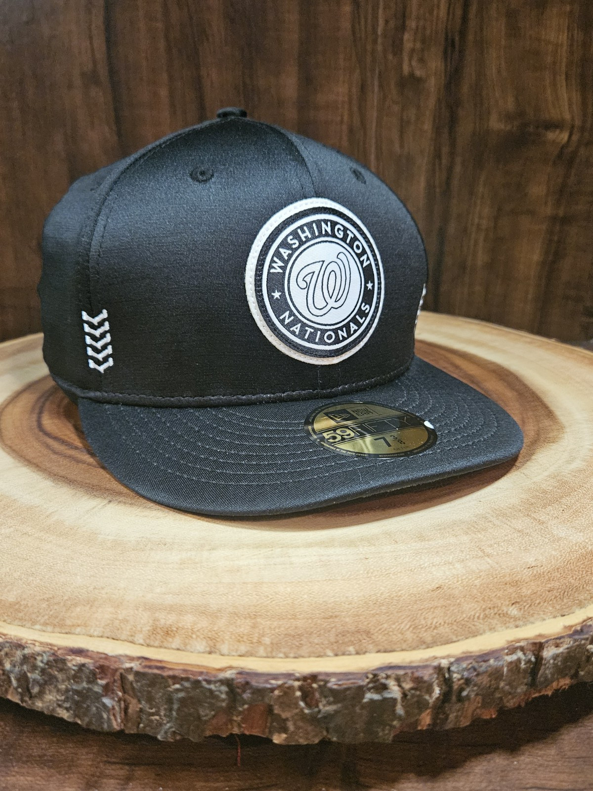 Elevate your headwear collection with the sleek Washington Nationals New Era 59Fifty Fitted Hat. This classic black baseball cap is a staple piece for any fan looking to represent their team in style. The fitted design ensures a comfortable and secure fit, while the bold round patch showcases your allegiance to the Nationals. Versatile and timeless, this hat is suitable for a wide range of occasions, from casual outings to business settings, and even to cocktail parties. Crafted with quality materials by New Era, a brand synonymous with sports and streetwear, this cap is a must-have accessory for the fashion-conscious individual.
