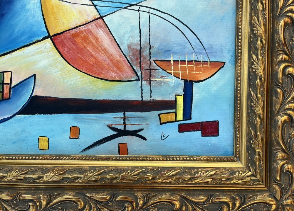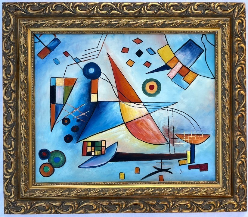 Wassily Kandinsky appears in lower center. Attribute to Wassily Kandinsky Technique: Oil Measures: 28 x 32 inches Frame size and 20 x 24.50 inches Image size Medium: Canva . Provenance: Private Collection. Wassily Wassilyevich Kandinsky was a Russian painter and art theorist. Kandinsky is generally credited as one of the pioneers of abstraction in western art, possibly after Hilma af Klint. Born in Moscow, he spent his childhood in Odessa.Good condition, Overall condition good. Please Note: All the pieces in this catalog are sold as Attribute to the artist. Attribute means that the piece may have been painted by the artist, or someone else inspired in the artist's style. Some pieces are accompanied by certificates if you have questions about the certification of any piece in this catalog, please do not hesitate to contact us.