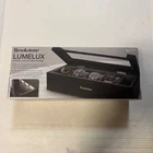 Watch Box - Brookstone Lumelux Light Box 4-Piece Light-Up Watch Case NIB New A great gift for any watch collector in your life. Valentine’s Day. Father’s Day. Birthday. Built in LED lighting, gently illuminates your watches upon opening displaying them in all their glory. Brookstone is known for its great craftsmanship and this is no different. Four watch compartments, and one accessories compartment are complimented by a soft, touch interior and four watch pillows. Photos are part of description Ask with questions Bin BY