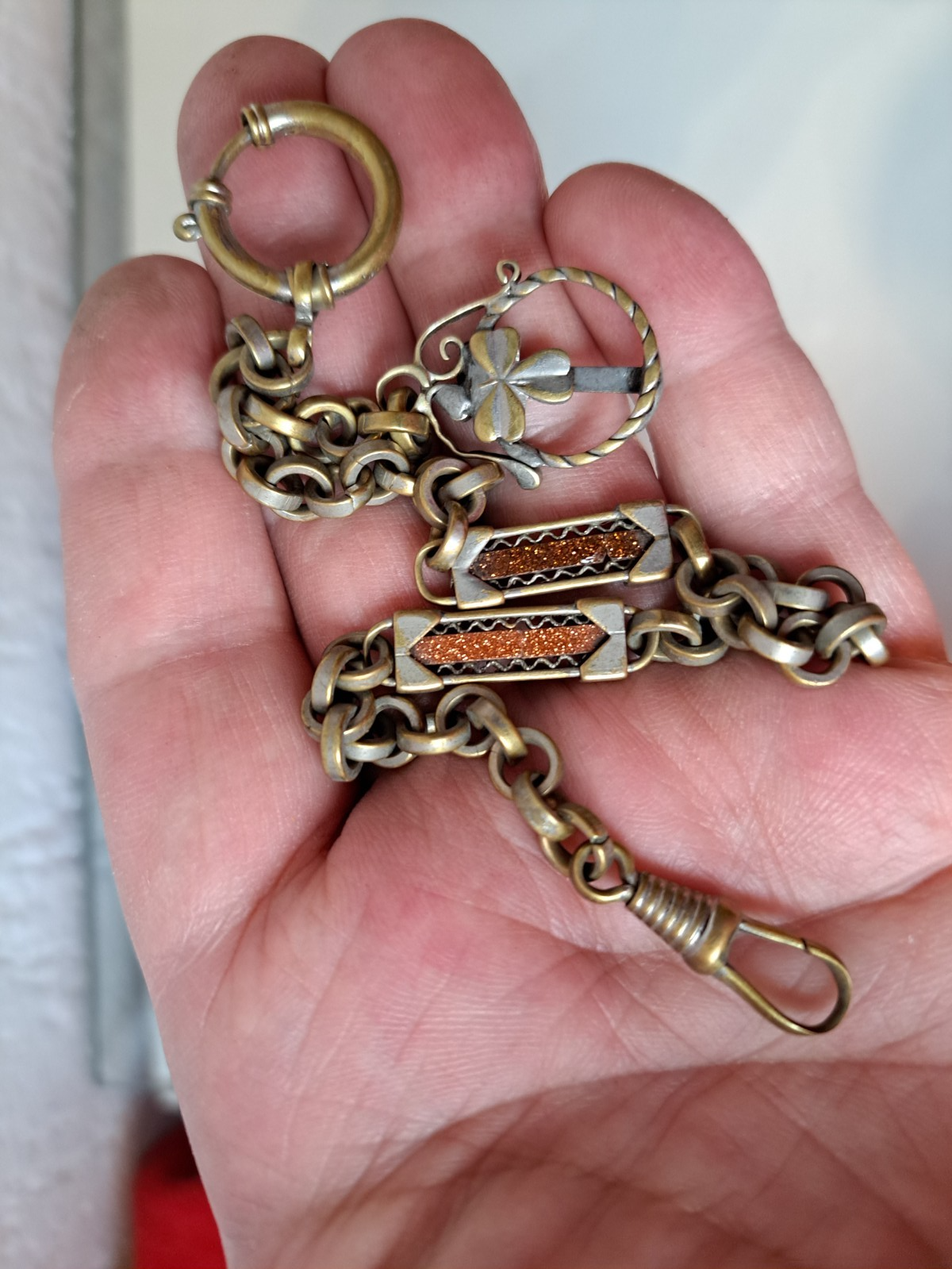 Watch Chain, Beautiful Old Chain For Pocket Watches, With Stones And Pendant The description of this item has been automatically translated. If you have any questions, please feel free to contact us. Nice old watch chain. Chain for pocket watch, metal with stones and pendant, beautifully crafted. Age-related, good condition (normal signs of age and wear, the two small stone slabs both have a small crack, see photos). Dimensions. approx. 26.5 cm long, up to 0.8 cm wide, ring diameter 2 cm, weighs 24.8 grams. I don't know the old of the chain ( old !). Beautiful, old watch chain! Many other beautiful, interesting, old and ancient things can be found in my other articles, see in! Legal provisions Notes of the seller This article is excluded from the General Product Safety Ordinance 2023/988 (GPSR). Because they are either animal sub -products, antiques, collections or works of art. Nice old watch chain. Chain for pocket watch, metal with stones and pendant, beautifully crafted. Age-related, good condition (normal signs of age and wear, the two small stone slabs both have a small crack, see photos). Dimensions. approx. 26.5 cm long, up to 0.8 cm wide, ring diameter 2 cm, weighs 24.8 grams. I don't know the old of the chain ( old !). Beautiful, old watch chain! Many other beautiful, interesting, old and ancient things can be found in my other articles, see in! Legal provisions Notes of the seller This article is excluded from the General Product Safety Ordinance 2023/988 (GPSR). Because they are either animal sub -products, antiques, collections or works of art.