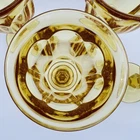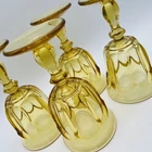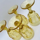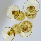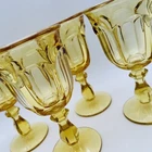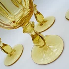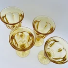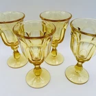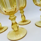 Add a touch of vintage elegance to your collection with these beautiful yellow water goblets from Imperial Glass. The four-piece set features a paneled design with an intricate stem. The Imperial Old Williamsburg water goblets are made of high-quality glass material and come in a stunning yellow color, adding a touch of sophistication to any barware collection. No chips or cracks. Measures approximately 6.5” and 3.5” diameter.