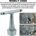 【Widely Used】Water Valve Shut Off Tool is compact and easy to use, with a hexagonal groove, designed for the pentagonal curb retaining box, which cuts off the water source at the curb. Its thin-walled receptacle design fits most meter boxes, making it very versatile. 【Product Material】The pentagonal box wrench is made of high-quality metal, which is strong and durable. The pentagonal curb box wrench has a one-piece structure. 【Product Size】Total size of water shut off tool: 1.19 x 3.5 x 3.5 inches. Manual measurement, please allow slight error. Please make sure the product size meets your requirement 【Advantage】This is an easy to use curb box wrench with a T-shaped handle so that it can be held securely. This pentagonal box wrench is 3.5 inches tall. A square section has been added to the wrench so that additional tools can be used for added leverage to easily load and unload pentagonal nuts. 【Comments】If you purchased this product from us and find it doesn't match after use, you can always return it. If you have any questions or suggestions, please feel free to contact us and we will reply within 24 hours. Product Description Pentagonal Curb Box Wrench Side Box Wrench Perfect replacement This pentagonal curb box wrench has a one-piece construction that is extremely durable and can be used to replace an existing handle when it interferes with the hose cover. Wide applicability Compact and convenient, this curb box wrench with hexagonal slots is designed for pentagonal curb retaining boxes to cut off water at the curb. Its thin-walled receptacle design fits most meter boxes, making it very versatile. Super durable Made of high-quality metal materials, it is strong and durable, and has a silver surface. Not easy to rust, durable, corrosion-resistant, and long-lasting. Compact and portable This handle has a T-shaped design so that it can be held securely, making it an easy-to-use curb box wrench. This Pentagon box wrench is 3.5 inches tall. A square section has been added to the wrench, which allows for additional tools to increase leverage and make it easy to load and remove the pentagon nut. Detail Product dimensions: 1.19 x 3.5 x 3.5 inches Material:metal M07001 Water Meter Box Key Water Meter Key This water meter lid key fits most water pipe lids, and the ergonomic curved T-shaped handle allows for a complete, comfortable grip and is a must-have feature for water meter box keys! Triangular Curb Box Wrench MKF2 Electric Box Key Meter Curb Box Cover Key The curb box wrench is compact and convenient, designed for pentagonal curb stop boxes to cut off water at the curb. The pentagonal water meter key fits most meter boxes, many types of meter pit covers and curb box covers, making it very versatile. Both meter box and curb box cover keys have rotating and lifting functions. 3/8" Butterfly Wing Nut T-Handle T-shank butterfly wing nut handle is suitable for Pera, Andersen flat window, all kinds of swing door P1300-PART-13-KEY Hydrant Key Faucet Key For P1300-PART-13-KEY Z1300 Fire Hydrant Series - Compatible with Zurn P1300 , Faucet Closing Tool for Wall Hydrant Faucet Valves and Outdoor Hose Valves.