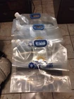 This premium collapsible container bag is the perfect addition to your household or outdoor adventures. With a capacity of 10 liters, it is ideal for storing and transporting water or other beverages. The clear plastic material allows you to easily see the contents inside, while the reusable design makes it a great choice for any age group. The Water Storage Cube 3 is perfect for hunting, climbing, running, hiking, and camping. It is freezer safe and can easily be folded flat for easy transport and storage. The bag is made of durable plastic material and comes in a set of 3. Get ready for your next outdoor adventure with this convenient and practical Water Storage Cube 3! 3 New / 1 is missing the cap / Top
