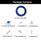 Why Choose Our Refrigerator Ice Maker line Kit? Our Quick Connectors are Made Of Polypropylene,It adopts Push to connect technology, which allows users to connect and Disconnect Quick And Easy Without The Need Of Any Other Tools. It Fits Standard 1/4 inch or 3/8 inch OD Plastic RO Tubing, Copper, CPVC, PEX and PVC Pipe or Hose. Applications Includes Multiple Potable Liquids Such As Reverse Osmosis Drinking Water, Beverage Dispensing, Coffee Machine, RV and , Misting Systems, Ice Makers and Many More. How to Use Water Filter Quick Connector? No Additional Tools Required,Just Pop in your 1/4"OD water tubing Push to connect, pushing until it won't go in. To remove, just push in the outer circle on each end and pull right out. You need to make sure the tubing is cut squared to insure no leaks. Our quick connector are reusable,it can be installed without Locking clips. What you will receive? 1/4 inch O.D. RO water tube ,32Ft 1/4 inch O.D. shut off valve quick connector,2pcs; 1/4 inch O.D. T tee quick connector,2pcs; 1/4 inch O.D. Y-Type tee quick connector,2pcs; 1/4 inch O.D. straight union quick connector,2pcs; 1/4 inch O.D. elbow union quick connector,2pcs; 1/4 inch O.D. check valve quick connector,2pcs; 1/4 inch O.D. tube quick connector water line fitting 32ft kit 1/4 inch Quick connector :12pcs Drinks Dispense and water filtration system fittings 【FOOD MATERIAL】 Our Refrigerator Ice Maker Water Line Kit is Made of Food Quick Connect Fittings and NSF Certified Tubing, Which Are Widely Used in RO Systems Water Filter Purification. 【SERVICE COMMITMENT】 For Your 100% Satisfaction 30-Day Back , 2-YEARS Quality . We Have Always Been Paying Attention the Quality of Our Refrigerater/Ice Maker line kit. Feel Free to Us at Any Time If You Have Any Dissatisfaction.