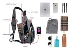 HIGH-QUALITY PACKABLE YET SPACIOUS SLING BAG FOR MEN, WOMEN, BOYS AND GIRLS- Multiple compartments and pockets including a hidden security pocket, a mobile phone pocket, one umbrella pocket/water bottle holder, a sunglasses belt and three big pockets with room for all your belongings. - Right choice for multipurpose use or as carry on luggage. LIGHTWEIGHT DURABLE & WATER-PROOF CROSSBODY BAG - Made of a lightweight, water repellent Polyester with top-quality zippers, suitable for Travel, Hiking, Cycling, Camping, mountaineering, School and other purpose. USB CHARGING PORT (without portable charger) - Implant USB cable. You may charge your mobile phone easily with the USB charing port (using the implanted USB cable connect your potable power supply). A Mobile Phone Pocket in shoulder strap makes you convenient for charging and listening while walking. DIFFERENT WAYS OF WEARING - Wear this sling bag over either shoulder with Reversible Shoulder Strap, or in the front to deter thieves. REFLECTIVE TAPE - Reflective detailing in the bottom of the big pocket for safety for late night using BREATHABLE PADDED BACK PANEL AND SHOULDER STRAP - Comfortable and lightweight, which release heat. Shoulder strap may vary from 27 to maximum 42 inches which can be adjusted tight to loose. Comfortable and fit any type of body.