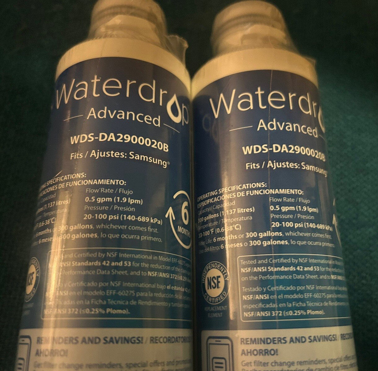 Waterdrop Advanced WDS-DA2900020B Refrigerator Water Filters 2-Pack for Pure Clean Water