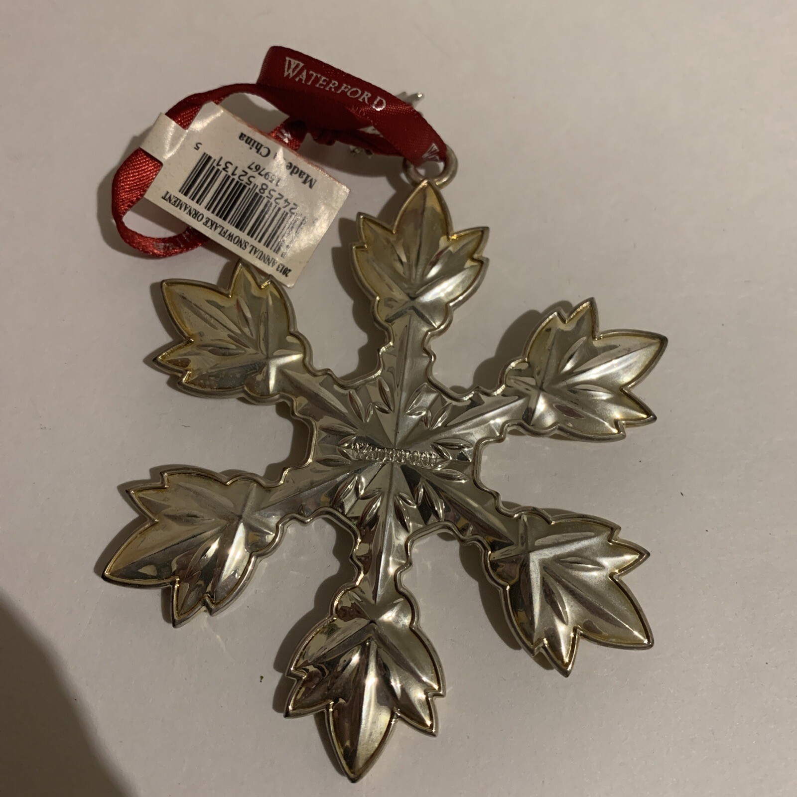This exquisite Waterford Christmas ornament is a must-have for collectors and fans of the brand. Crafted of silver-plated material, this 2013 Snowflake-shaped ornament is a stunning addition to any holiday decor. It is perfect for celebrating the occasion, adding sparkle and elegance to your Christmas tree. The ornament is designed in a classic style and features the iconic Waterford quality and craftsmanship that the brand is known for. It is a great gift for loved ones and a timeless treasure that will be cherished for years to come. Shipped with USPS ground Advantage. Condition New