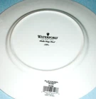 Waterford Bone China Ballet Icing Pearl 9" Accent Plate Beautiful fine bone china accent plate featuring a fanciful white-on-white slightly raised line design accented with bands of polished platinum. • Measures approx. 9" in diameter • This multi-purpose plate can be used to serve your favorite salad, sandwich, dessert and more • Dishwasher safe • Made in Indonesia • Discontinued Unused accent plate with original barcode sticker . It came direct from Waterford with a small chipped edge on its platinum band exposing a bit of white (see pix). Not noticeable from top. ----------- Please closely examine the listing and submit any questions prior to purchase. Pictures may not reflect true colors due to various lighting conditions. Smoke-free, pet-free environment
