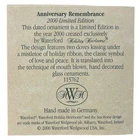 Waterford Crystal ~ Anniversary Remembrance (2000) Holiday Heirlooms Ornament For your consideration, "Anniversary Remembrance" ornament. The ornament features two love birds and is dated 2000 and has been translated into the technique of a mouth blown, hand decorated glass ornament and made in Germany for Waterford. 4" Tall Beautiful, damage-free Will arrive in a Waterford HH box that is not the original Made in Germany "For over two centuries the name Waterford bas been synonymous with fine quality and excellence in craftsmanship. For generations, the skilled artisans at Waterford Crystal have been creating the most beautiful and sought after crystal in the world. Now the traditions of hand cut crystal are aligned with the traditions of hand-crafted Christmas ornaments and the leading artisans of Europe. Waterford Crystal is proud to offer you Waterford Holiday Heirlooms. Each ornament is hand made, formed by craftsman using the centuries old technique of mouth blown glass and then painted and decorated by specially trained artists. The charm of handcrafting ensures that each piece has its own unique characteristic with no two pieces being exactly alike. In addition, the exclusively designed hanger cap crowns each ornament providing a signature for Waterford Holiday Heirlooms. Expand upon your personal traditions of gift giving and collecting with Waterford Holiday Heirlooms." Ships insured Have more Christmas listed Value Added Service We answer emails personally and understand you have concerns and questions that may be outside of the scope of the auction copy Feedback is left by us when we receive your payment. It's the very least we can do to thank you for putting your trust in us We know how to pack, using the proper materials to best protect your purchase Shipping Buyer is responsible for shipping costs, unless the listing is advertised as "Free Shipping". The shipping fee is either clearly stated or the eBay calculator determines shipping based on your zip code and the box particulars. Multiple purchases may have an unknown shipping rate due to fluctuations in weight but items will be combined to save money whenever possible. Insurance is always provided by us to cover loss or in the rare instance, damage If you intend on bidding on multiple items, please let us know so we don't start packing in advance In the case of damage in an insured shipment: Retain all packing materials and the box that was received. Please submit digital images of the damage as well as the shipping box and packing materials via Contact Seller in eBay. Returns If you receive something not as described due to a blatant mistake on our part, we'll pay everything; return shipping as well as a full refund of the purchase price and the original shipping Buyer's Remorse: We are flexible if a purchased item arrives and you simply change your mind. A 15% restocking fee will be charged and return shipping is at buyer's expense Please notify us within three days of item(s) receipt and for pre-authorization (use the contact button). The item(s) must be returned and received in the same condition as when originally shipped. Item(s) must be returned shipping prepaid, insured for the full value and safely wrapped and packaged to prevent shipping damage. Unless stated as new, these pieces have been around for many years, some as many as 100 years and are sold as described. They may have been displayed, used, washed, packed, etc The pictures and descriptions are as detailed as possible, and all reasonable care has been taken to describe as accurately as possible along with any damage or issues noted. However, vintage and antiques are previously owned If anything less than perfect, out of the box, isn't acceptable, these style pieces may not meet your standards.