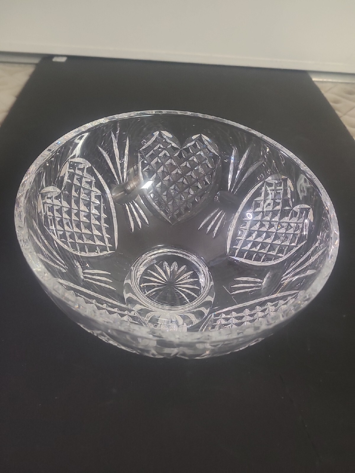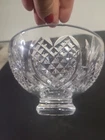 Add a touch of elegance to your wedding with this exquisite Waterford crystal bowl. Made in Ireland, this 8" footed bowl features a beautifully cut diamond heart pattern that will make any table shine. Perfect for serving salads or displaying fruits, this bowl will be a cherished heirloom for years to come. Whether you're celebrating your special day or looking for a stunning addition to your collection, this Waterford bowl is sure to impress.
