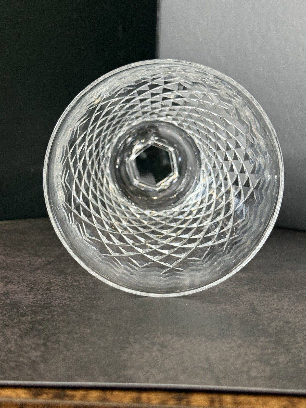 This product is a set of two Waterford Crystal water goblets in the Alana pattern, standing at 7 inches tall with a diameter of 3.5 inches. Each goblet carries the Waterford etched mark and is made of clear crystal, crafted in a cut glass production style. These elegant glasses are a classic addition to any drinkware collection, adding a touch of sophistication to any table setting. There are no chips or cracks. They are in excellent condition. Please examine the pictures carefully. Due to the delicate nature of these items, I do not accept returns. Also, please note this listing is for TWO glasses. We have a total of six glasses available at this time so if you’d like more than 2 please update the quantity accordingly (Qty 2 = 4 glasses; Qty 3 = 6 glasses). Feel free to message us with any questions!