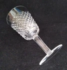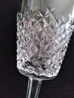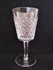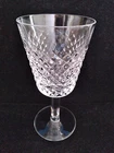 This highly decorative water goblet glass made by Waterford Crystal of Ireland in the 'Alana' pattern. The Alana pattern features a series of deeply cut quilted diamond shapes designed to catch and reflect the light to maximum advantage. Multi-sided Stem. Measures: 7" tall, 3-1/2" diameter at the top. The older Waterford Crystal watermark on the bottoms. In the excellent pre-owned condition, no damage. No original box. Please see all photos as a part of the description. #2/4