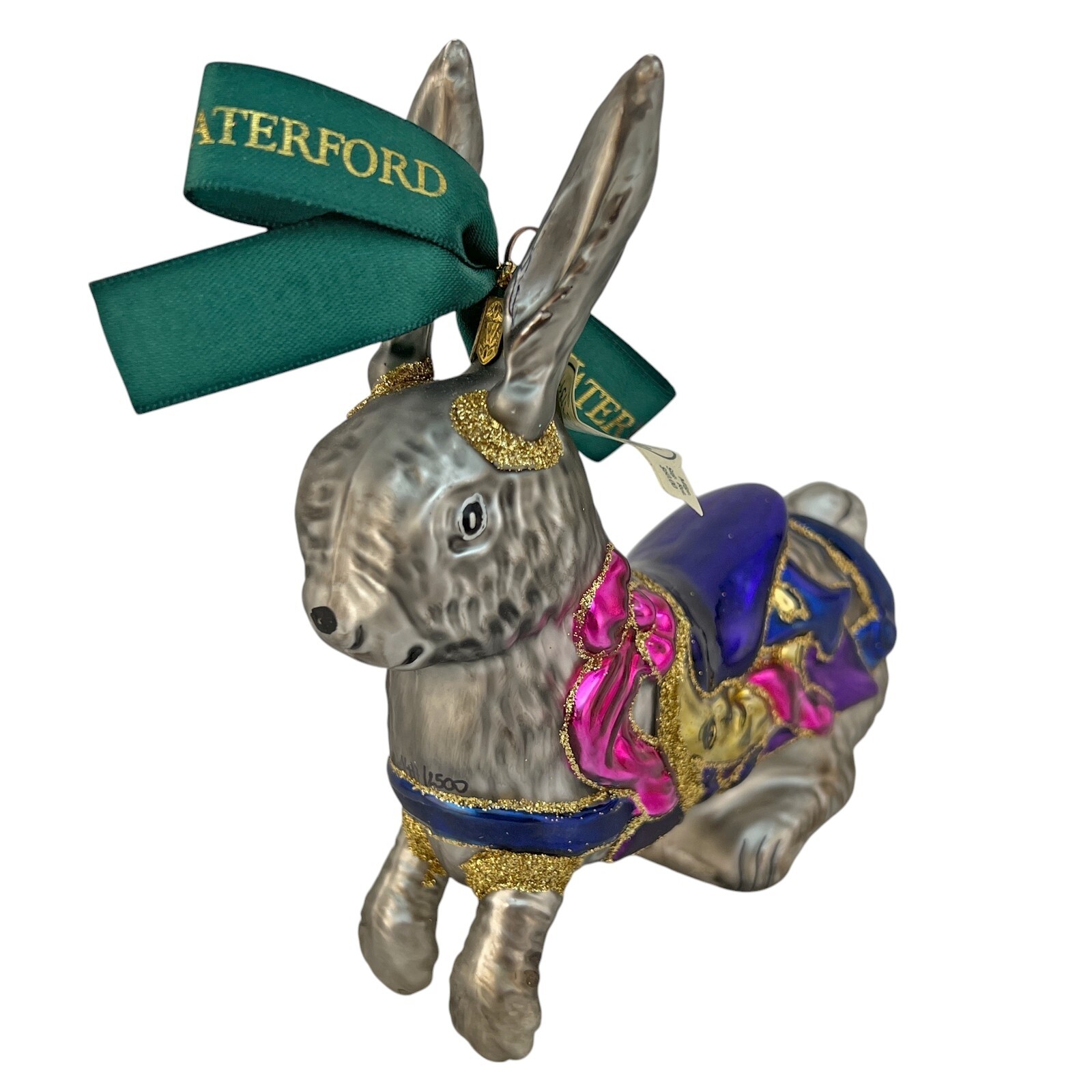 Waterford Crystal ~ Carousel Rabbit Holiday Heirlooms Ornament Waterford Society Private Collection For your consideration, "Carousel Rabbit" ornament handmade in Poland in 2001. "The numbered limited edition ornament is the Second Edition in the Carousel Series created exclusively for Waterford Society members. The design is inspired by antique carousel rabbits and is translated into the technique of mouth-blown, hand-decorated glass ornaments." 5" Long, 5-1/2" Tall Hand numbered 1477 of 2,500 Will arrive in the original box with acid free paper T he box has shelf wear, as shown "For over two centuries the name Waterford bas been synonymous with fine quality and excellence in craftsmanship. For generations, the skilled artisans at Waterford Crystal have been creating the most beautiful and sought after crystal in the world. Now the traditions of hand cut crystal are aligned with the traditions of hand-crafted Christmas ornaments and the leading artisans of Europe. Waterford Crystal is proud to offer you Waterford Holiday Heirlooms. Each ornament is hand made, formed by craftsman using the centuries old technique of mouth blown glass and then painted and decorated by specially trained artists. The charm of handcrafting ensures that each piece has its own unique characteristic with no two pieces being exactly alike. In addition, the exclusively designed hanger cap crowns each ornament providing a signature for Waterford Holiday Heirlooms. Expand upon your personal traditions of gift giving and collecting with Waterford Holiday Heirlooms." Ships insured Have more Christmas listed Value Added Service We answer emails personally and understand you have concerns and questions that may be outside of the scope of the auction copy Feedback is left by us when we receive your payment. It's the very least we can do to thank you for putting your trust in us We know how to pack, using the proper materials to best protect your purchase Shipping Buyer is responsible for shipping costs, unless the listing is advertised as "Free Shipping". The shipping fee is either clearly stated or the eBay calculator determines shipping based on your zip code and the box particulars. Multiple purchases may have an unknown shipping rate due to fluctuations in weight but items will be combined to save money whenever possible. Insurance is always provided by us to cover loss or in the rare instance, damage If you intend on bidding on multiple items, please let us know so we don't start packing in advance In the case of damage in an insured shipment: Retain all packing materials and the box that was received. Please submit digital images of the damage as well as the shipping box and packing materials via Contact Seller in eBay. Returns If you receive something not as described due to a blatant mistake on our part, we'll pay everything; return shipping as well as a full refund of the purchase price and the original shipping Buyer's Remorse: We are flexible if a purchased item arrives and you simply change your mind. A 15% restocking fee will be charged and return shipping is at buyer's expense Please notify us within three days of item(s) receipt and for pre-authorization (use the contact button). The item(s) must be returned and received in the same condition as when originally shipped. Item(s) must be returned shipping prepaid, insured for the full value and safely wrapped and packaged to prevent shipping damage. Unless stated as new, these pieces have been around for many years, some as many as 100 years and are sold as described. They may have been displayed, used, washed, packed, etc The pictures and descriptions are as detailed as possible, and all reasonable care has been taken to describe as accurately as possible along with any damage or issues noted. However, vintage and antiques are previously owned If anything less than perfect, out of the box, isn't acceptable, these style pieces may not meet your standards.