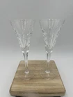 2 WATERFORD CRYSTAL GLASS CHAMPAGNE GLASSES. These 2 glasses measure 9 1/4” tall and 3 7/16” across. They are in new mint condition with no damage. Beautiful pieces to add to your collection.