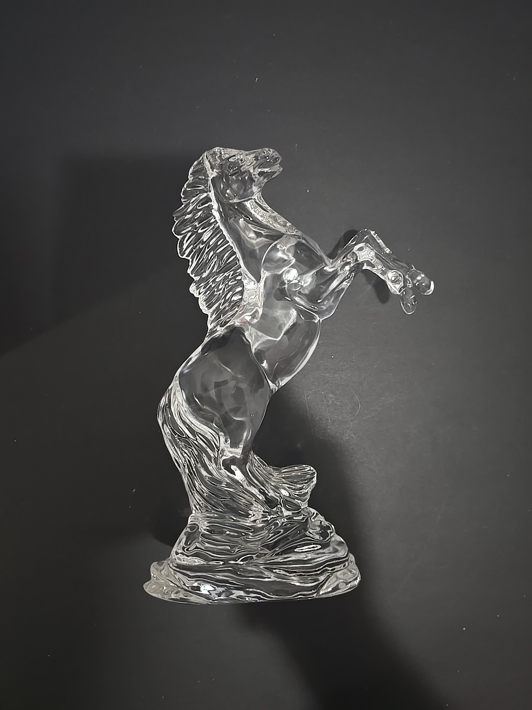 Experience the elegance of equine artistry with this Waterford Crystal Horse Figurine. Standing at an impressive 9.5 inches in height, this glass sculpture captures the graceful spirit of a horse in a stunningly realistic format. Crafted with meticulous attention to detail, it is an authentic piece that brings a touch of animal-themed sophistication to any collection or display. The figurine's origins trace back to China, where skilled artisans shaped and crafted each piece, ensuring that each sculpture met the high standards associated with the Waterford brand. Without its original packaging, this horse sculpture is ready to be admired and showcased by art enthusiasts and equine lovers alike.