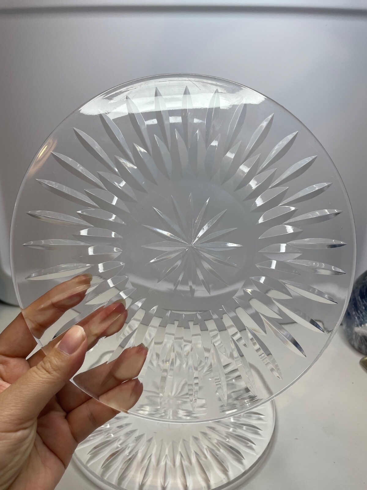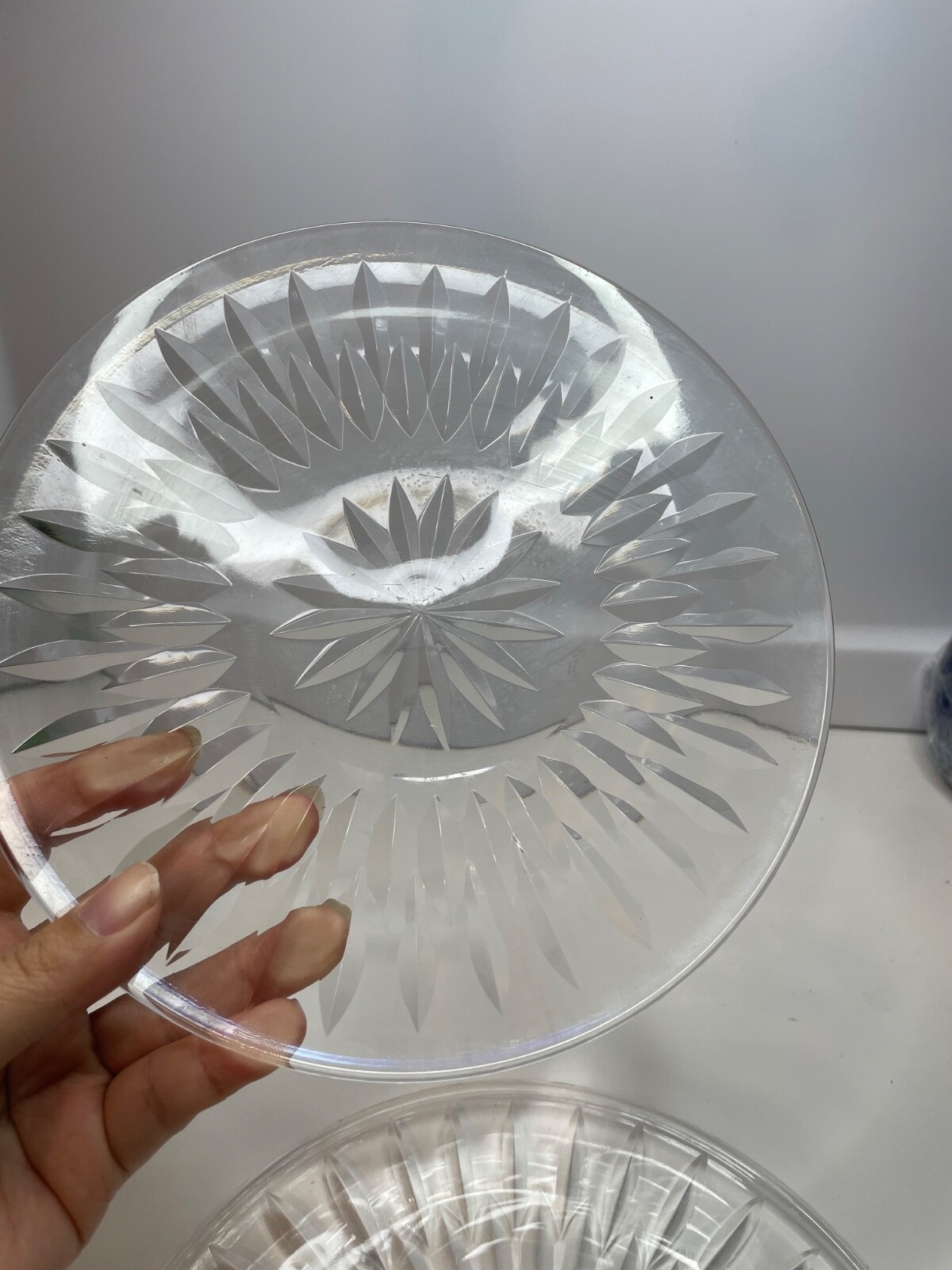 about 8 inches wide these two plates got some difference weights different, size little bit different as well. got many utensils marks.
