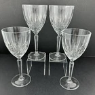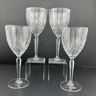 Set of Four SUPERIOR Condition Vintage 10 Ounce Capacity Cut Crystal Waterford Water Goblet Glasses in the Sparkle Pattern from the Marquis Product Line This is a set of four vintage 10 ounce capacity cut crystal water goblets / glasses by Waterford in the Sparkle pattern part of the Marquis product line. This pattern has been retired. These glasses are in superior condition appearing to have seldom been used. There are no chips, no cracks, no stains, and no haze. See pictures. If you enjoy the quality and style of Waterford crystal, then you will want this set of glasses! Part of the retired Sparkle cut crystal pattern, these goblets shine with beauty! The bowl has a softly downward tapered bowl decorated with series of vertical cuts along the upper bowl area whereas the base of the bowl area features a series of star-like criss-cross cuts. The goblet stem is faceted with a round foot. The glass dimensions are 8-3/8" H, 3-1/2" diameter, has a 10 ounce capacity when filled to the brim, and weigh 9.7 ounces each. These items will be well packed in a heavy duty box to help ensure safe delivery.