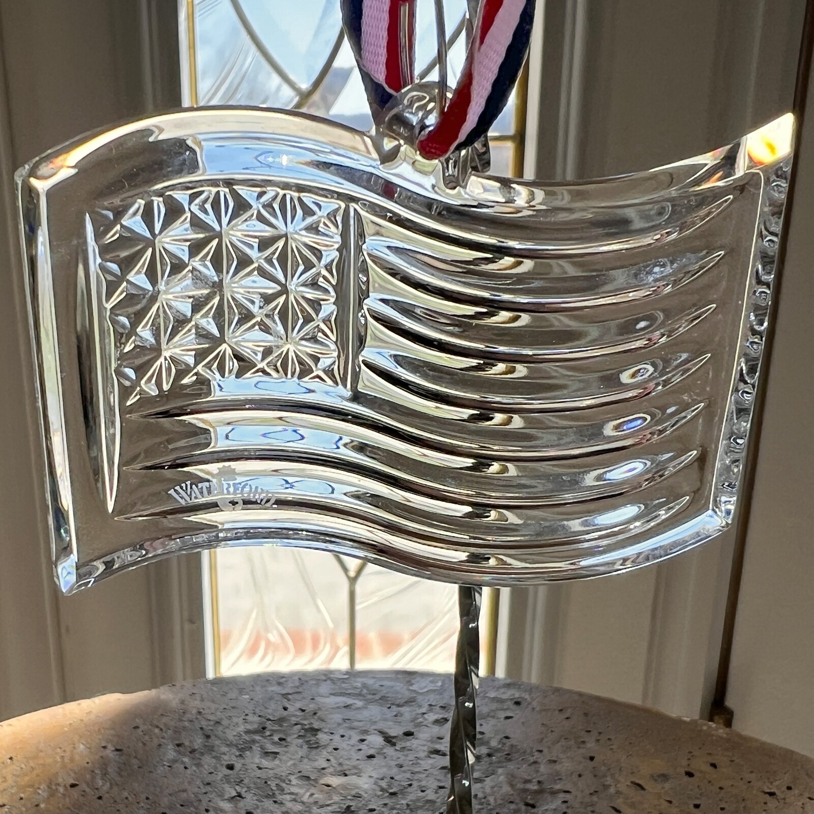 Waterford Crystal - Spirit of America Ornament 1995 For your consideration, " Spirit of America " ornament features a red, white, and blue grosgrain ribbon. "A sparkling representation of Old Glory, this American Flag Ornament captures the romantic movement of the beloved stars & stripes featuring cross and upright cuts all along the patriotic stars and stripes design. Elegant and romantic, the brilliantly clear Waterford crystal American Flag Ornament is the perfect accent in brilliantly clear Waterford Crystal." 3 - 1 /4" Long, 2" Tall Waterford logo acid etched on side of ornament Made in Ireland Ornament will arrive in Waterford clamshell box with pouch, "Living with Waterford Crystal" booklet and outer sleeve. The ornament hanger used for photography is not included. Damage-free. Ships insured Have more Waterford listed Value Added Service We answer emails personally and understand you have concerns and questions that may be outside of the scope of the auction copy Feedback is left by us when we receive your payment. It's the very least we can do to thank you for putting your trust in us We know how to pack, using the proper materials to best protect your purchase Shipping Buyer is responsible for shipping costs, unless the listing is advertised as "Free Shipping". The shipping fee is either clearly stated or the eBay calculator determines shipping based on your zip code and the box particulars. Multiple purchases may have an unknown shipping rate due to fluctuations in weight but items will be combined to save money whenever possible. Insurance is always provided by us to cover loss or in the rare instance, damage If you intend on bidding on multiple items, please let us know so we don't start packing in advance In the case of damage in an insured shipment: Retain all packing materials and the box that was received. Please submit digital images of the damage as well as the shipping box and packing materials via Contact Seller in eBay. Returns If you receive something not as described due to a blatant mistake on our part, we'll pay everything; return shipping as well as a full refund of the purchase price and the original shipping Buyer's Remorse: We are flexible if a purchased item arrives and you simply change your mind. A 15% restocking fee will be charged and return shipping is at buyer's expense Please notify us within three days of item(s) receipt and for pre-authorization (use the contact button). The item(s) must be returned and received in the same condition as when originally shipped. Item(s) must be returned shipping prepaid, insured for the full value and safely wrapped and packaged to prevent shipping damage. Unless stated as new, these pieces have been around for many years, some as many as 100 years and are sold as described. They may have been displayed, used, washed, packed, etc The pictures and descriptions are as detailed as possible, and all reasonable care has been taken to describe as accurately as possible along with any damage or issues noted. However, vintage and antiques are previously owned If anything less than perfect, out of the box, isn't acceptable, these style pieces may not meet your standards.