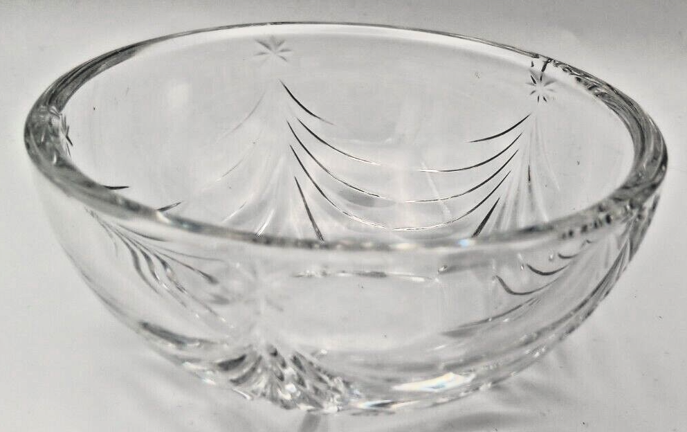 $ 10.56VTG Irena Tri Candy Dish Clear Cut Lead Crystal Footed Lid Etched Glass