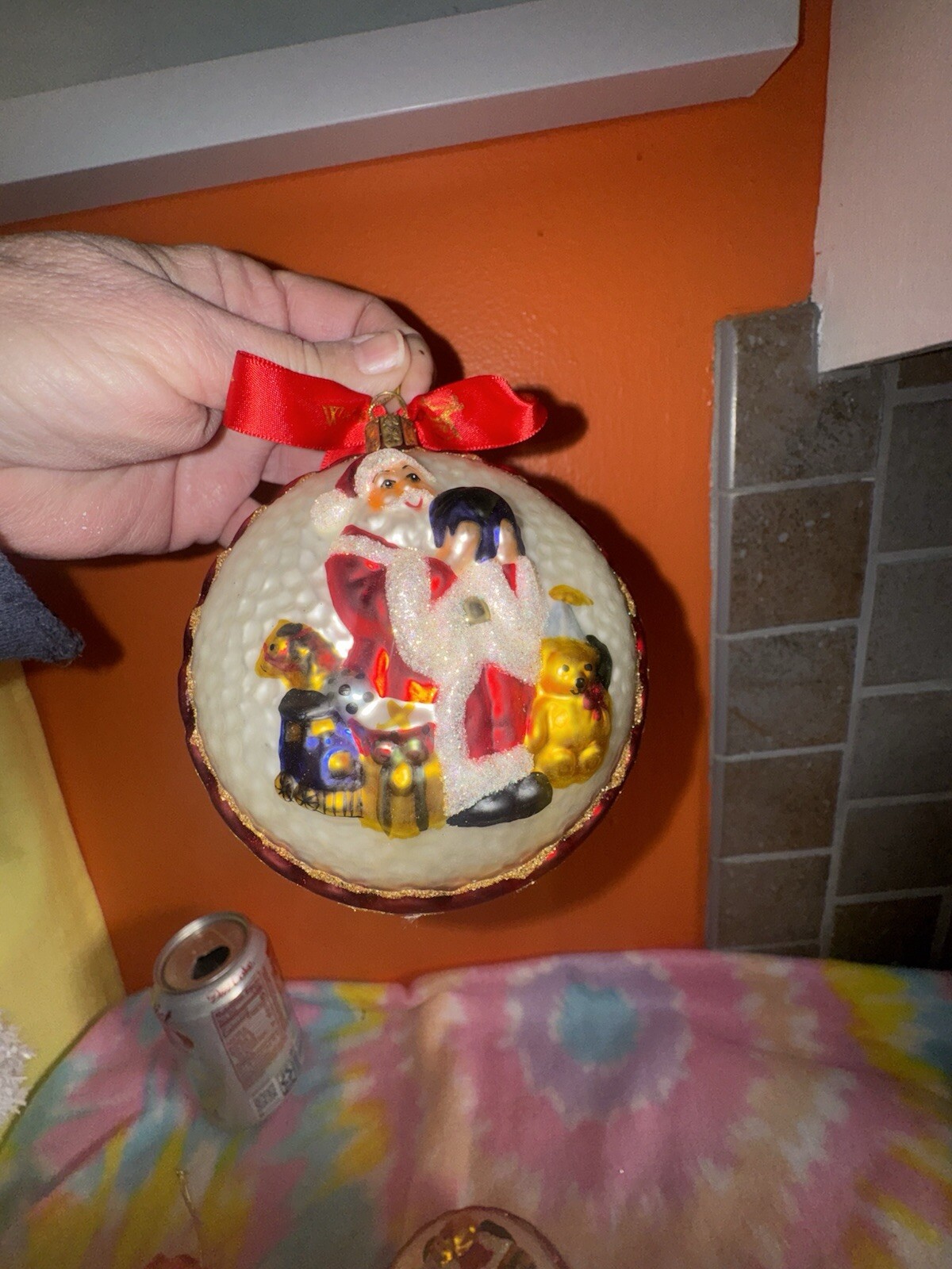 WATERFORD FTD Ornament with Santa and Globe 2 sided ornament I put a soda can next to it to help you judge its size It has a little wear but overall good condition as you can see I have 3 available and you will receive of shown Please See Pictures