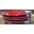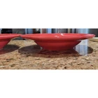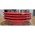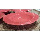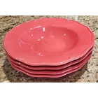 Add some elegance to your dining table with this beautiful four-piece bowl set from Waterford's Greatroom collection. The oval-shaped bowls are made of high-quality ceramic material that is both microwave and dishwasher safe. The Coral Zinger pattern and bright orange color make them perfect for all occasions, whether it's a casual family dinner or a formal gathering. Each bowl measures 10 1/2 inches in length and 9 1/2 inches in depth. The set includes four bowls and is an original Waterford product, with a contemporary style that is perfect for modern homes. The bowls are produced using the pottery technique and come with a printed backstamp. These bowls are a must-have for any home and are sure to impress your guests. One bowl does have a chip just under the rim and is shown in the pictures. Otherwise they are all in excellent condition.