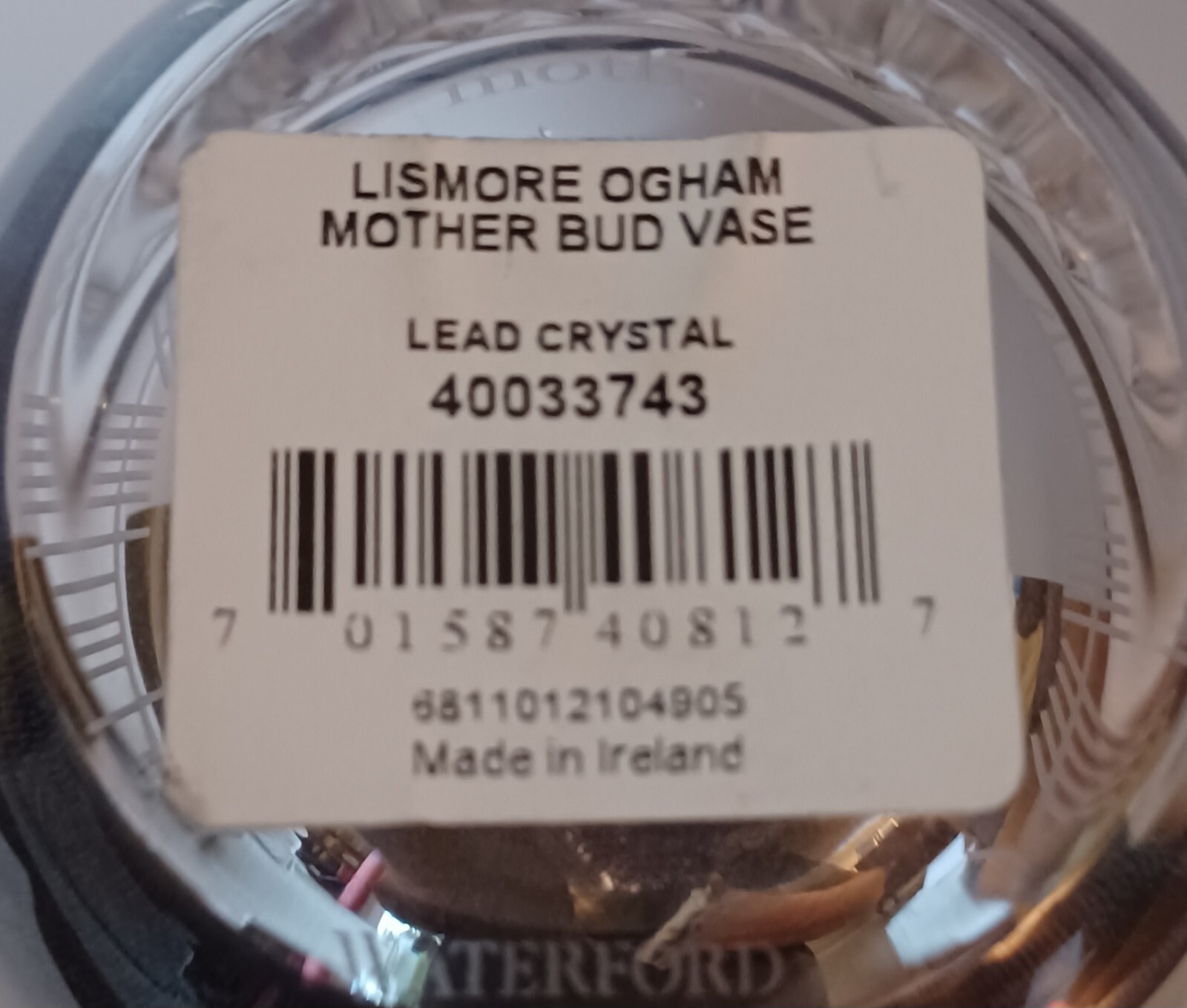 Elevate your space with the Waterford Lismore Ogham Crystal Bud Vase, a piece that beautifully combines the timeless elegance of Irish crystal with the personal touch of a Mother-themed engraving. Crafted in Ireland, known for its legacy in fine crystal production, this 6-inch vase showcases the intricate cut glass design that Waterford is renowned for, making it a decorative standout. The vase, featuring a pristine clear crystal material, is complemented by its original and signed status, ensuring its authenticity and making it a valuable addition to any collection. Its engraved details pay homage to the artistry and tradition of Irish craftsmanship, making it an ideal gift or a cherished keepsake for someone special. Perfect for Mother's Day or as a birthday gift.