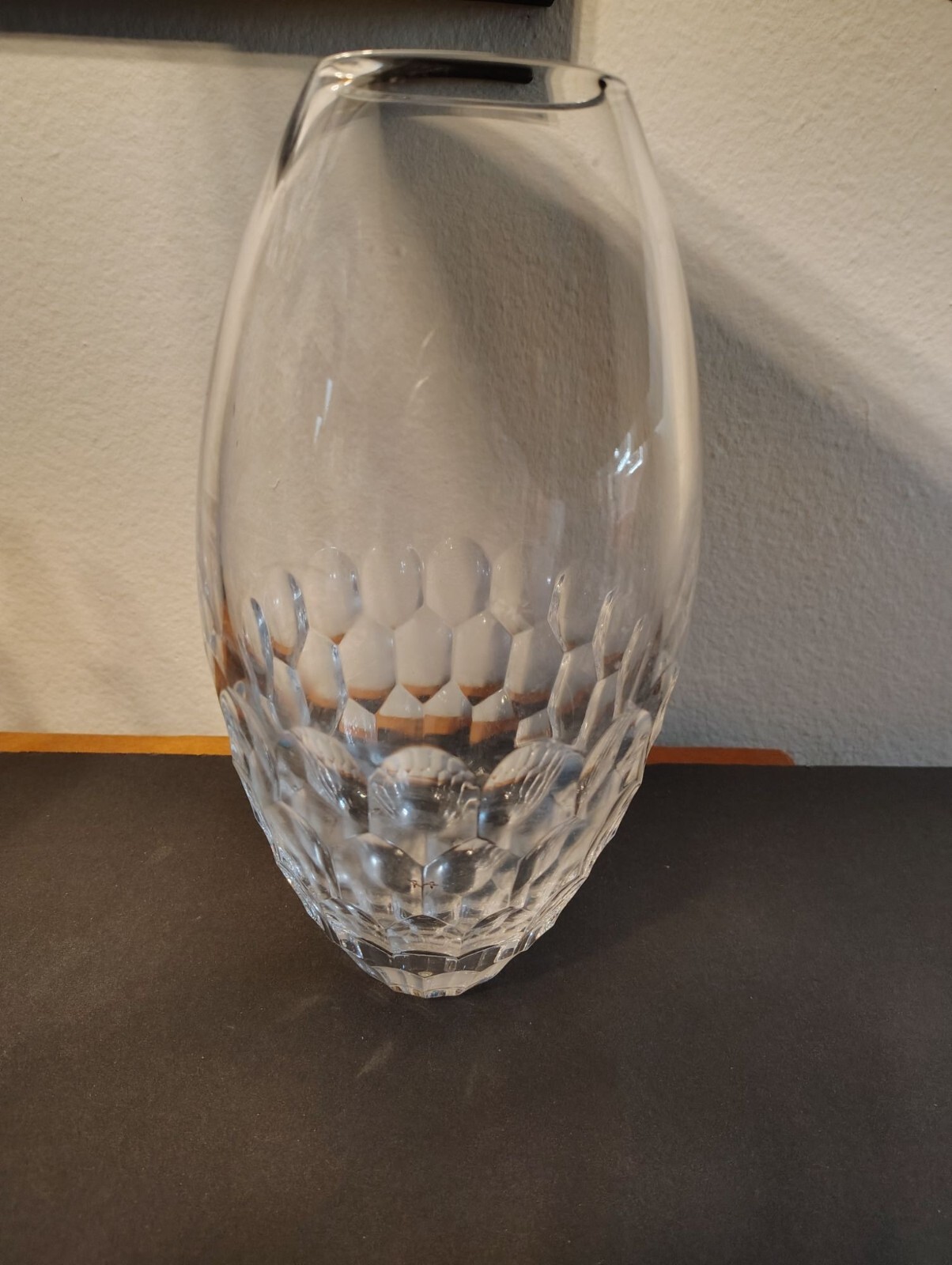 This elegant Waterford Monique Lhuillier Crystal Flower Vase Atelier features a signed design and is crafted from heavy crystal, perfect for enhancing any home decor with sophistication. It measures 11" in height, 2.5" in diameter at the mouth and 17.5" in circumference at its thickest. No chips or cracks but some calcium on the inside. Please see all photographs as they are part of the description. Shipped with USPS Ground Mail.