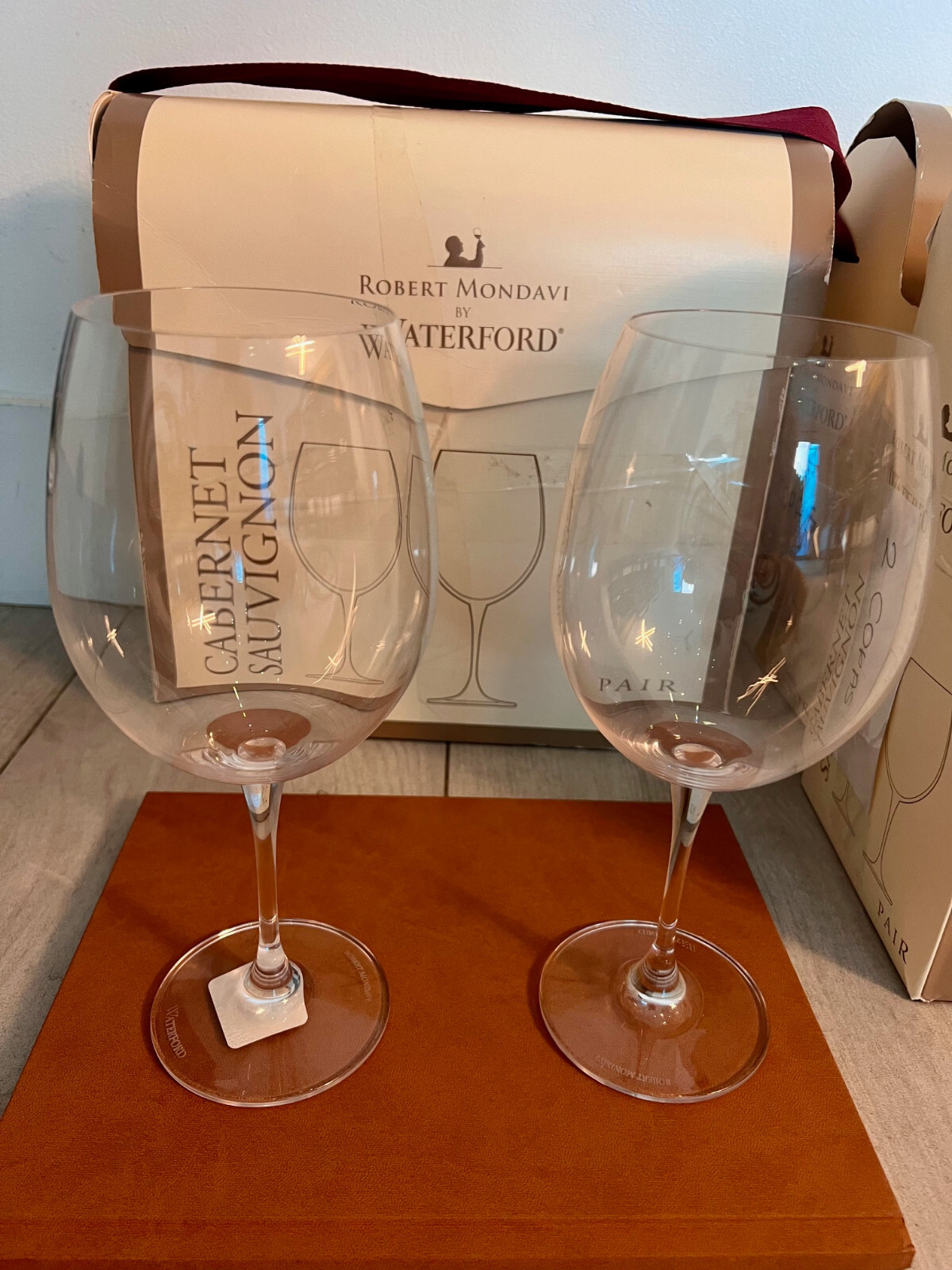 Elevate your wine-drinking experience with this luxurious Cabernet Sauvignon crystal wine glass. Crafted in Austria, this hand-blown glass boasts a classic style and a clear color that will complement any table setting. Entertaining and gift giving with Robert Mondavi by Waterford is a generous expression of your good taste and high esteem for friends, family and fine wine. Made by Waterford, this wine glass features a cabernet sauvignon design and is made of high-quality crystal material. It's perfect for those who want a stylish and elegant wine-drinking experience. This glass is a must-have for any wine enthusiast and is sure to impress your guests. 5 Sets of 2, in total 10 luxurious Cabernet Sauvignon wine glasses available Price: $50 each wine glass Hand Blown glass 9.6" H and 28 onz. Capacity Brand: Robert Mondavi by Waterford Made in Austria Completely new and in perfect condition! (Never used)