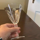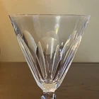 Up for your consideration is a single Waterford (of Ireland) crystal water goblet or glass in the Sheila Smooth pattern. The triangular bowl of the glass has 6 smooth panel cuts. The stem is 6-sided and the base is plain. The Waterford name is acid etched on the underside of the base. According to one internet source, this pattern was made by Waterford from 1958 to 2017. The goblet stands about 7 inches tall, measures 4 inches across the top opening, and weighs 10 5/8 ounces. The bottom is acid etched with the Waterford name (see the last photos). The water goblet is in excellent, like-new condition, with no chips or cracks. There are no signs of wear or use. Please see all the photos. Thanks for looking!
