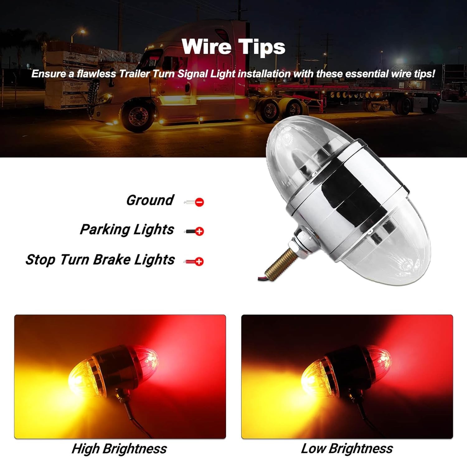 Watermelon Turn Signal Lights for Semi Truck Dual Revolution Red Amber/Red Product Details Brand: XtraGlow Color: Amber/Red Specific Uses For Product: Brake Lights, Exterior, Signal Lights Vehicle Service Type: Freightliner, Kenworth, Peterbilt, Semi Truck, Truck, Western Star Year: 2018 Special Feature: Corrosion Resistant, Dustproof, Impact Resistant, Shockproof, Waterproof Auto Part Position: Outer, Outside Lens Color: Clear Lens Material: Polycarbonate Assembly Required: Yes Automotive Fit Type: Universal Fit Manufacturer: XtraGlow Model: Dual Face Watermelon Turn Signal Lights for Semi Truck Clear Lens Item Weight: 1.32 pounds Package Dimensions: 7.64 x 7.52 x 4.41 inches Item model number: 168151 Exterior: Machined Manufacturer Part Number: 168151 Special Features: Corrosion Resistant, Dustproof, Impact Resistant, Shockproof, Waterproof Brand: XtraGlow Color: Amber/Red Specific Uses For Product: Brake Lights, Exterior, Signal Lights Vehicle Service Type: Freightliner, Kenworth, Peterbilt, Semi Truck, Truck, Western Star Year: 2018 Special Feature: Corrosion Resistant, Dustproof, Impact Resistant, Shockproof, Waterproof Auto Part Position: Outer, Outside Lens Color: Clear Lens Material: Polycarbonate Assembly Required: Yes Light Source TypeVoltage: LED12 Volts Package Includes. 2pcs 34 LEDs Reflector Watermelon Clear Lens Double-Face Pedestal Lights with a heavy-duty chrome die-cast housing and single-stud mounting. The plastic bezel adds a sleek look to the 3.5" round amber/red LED turn signal light. Each light features 34 high-power LEDs with a faceted reflector design, ensuring enhanced brightness and a modern appearance. Cool Brightness. This double-face LED watermelon light is fully sealed and equipped with 34 LEDs, 17 amber LEDs with an amber lens on one side and 17 red LEDs with a red lens on the other. It measures 7" in overall width and 5.5" in overall height, with 3.5" diameter lights resembling cab-style lights. Designed for heavy trucks, this chrome double-face reflector auxiliary light requires thick mounting brackets for secure installation. Easy to Install. This 10V-30V DC 34 LEDs Chrome Double-Face Auxiliary Watermelon Light features a simple three-wire hardwired setup for easy installation with single stud bolts. White wire serves as ground, black wire provides low brightness for parking or marker lights, and red wire delivers high brightness for stop, turn, brake, and rear turn signal lights. Widely Use. This Chrome Double-Face Reflector 34 LEDs Auxiliary Light is universally compatible with most trucks and trailers, especially heavy-duty models such as Freightliner Cascadia, Century, Classic, Columbia, Coronado, FLD; Kenworth K100, T2000, T300, T600, T660, T680, T700, T800, W900; Peterbilt 330, 335, 367, 377, 378, 379, 386, 387, 389, 579, 587; International 4300, 4700, 9200, 9300, 9400, 9670, 9900, Paystar 5900, Prostar, TranStar 8500, 8600, Workstar 7600, 7700; Volvo VNL, VNM, WIA; White GMC; and Mack CH, Granite, R600, R700, RD, and Vision. IP65 Waterproof. These durable LED lights feature sonically sealed polycarbonate lenses and fully waterproof housings. Designed to withstand heavy rain, they ensure reliable performance, keeping your truck well-marked and enhancing safety on the road. Package included:2Pcs Dual Face Watermelon Turn Signal Lights for Semi Truck Clear LensFitment:Compatibility with Most trucks and trailers, especially heavy-duty models such as Freightliner Cascadia, Century, Classic, Columbia, Coronado, FLD; Kenworth Peterbilt, International, Paystar, Prostar, TranStar, Workstar; Volvo VNL, VNM, WIA; White GMC; and Mack CH, Granite and Vision.Features:LED Type: SMDLED QTY: 34 LEDsLED Color: Amber/RedLens Color: Clear LensWaterproof: IP65Wire Tips:White line: the groundRed line: high brightness for stop, turn, brake, and rear turn signal lights.Black line: low brightness for parking or marker lightsUpgrade your vehicle's lighting with confidence - choose our Dual Face Watermelon Turn Signal Lights for a safer and more stylish driving experience!