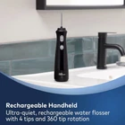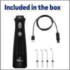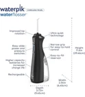 Waterpik Cordless Plus Water Flosser with 4 Flossing Tips, Rechargeable - Black. It’s brand new, open box! Item: P3 RECHARGEABLE CORDLESS WATER FLOSSER: Waterpik Cordless Pearl will help you maintain healthier gums and brighter teeth whether you are at home or on the go. It features a rechargeable battery and handheld portable design. ERGONOMIC AND QUIET: Narrow hand grip and improved 360-degree tip rotation provide enhanced maneuverability for a handheld water flosser, plus Cordless Pearl features our new quiet flossing technology. DENTIST RECOMMENDED: 9 in 10 dental professionals recommend the Waterpik brand. Waterpik is clinically proven and the first water flosser brand to earn the American Dental Association (ADA) Seal of Acceptance. KEY FEATURES: 4 tips, 2 pressure settings, removable 7oz reservoir (top-rack dishwasher safe for easy cleaning), 45 secs flossing time, rechargeable NiMH battery, USB charger (wallbrick not included), 360 tip rotation, not for use in shower EASY AND EFFECTIVE: The Waterpik Cordless Pearl water flosser removes up to 99.9 percent of plaque and is up to 50 percent more effective than dental floss for improving gum health. Just fill the reservoir with warm water, place the tip in your mouth, and start flossing.