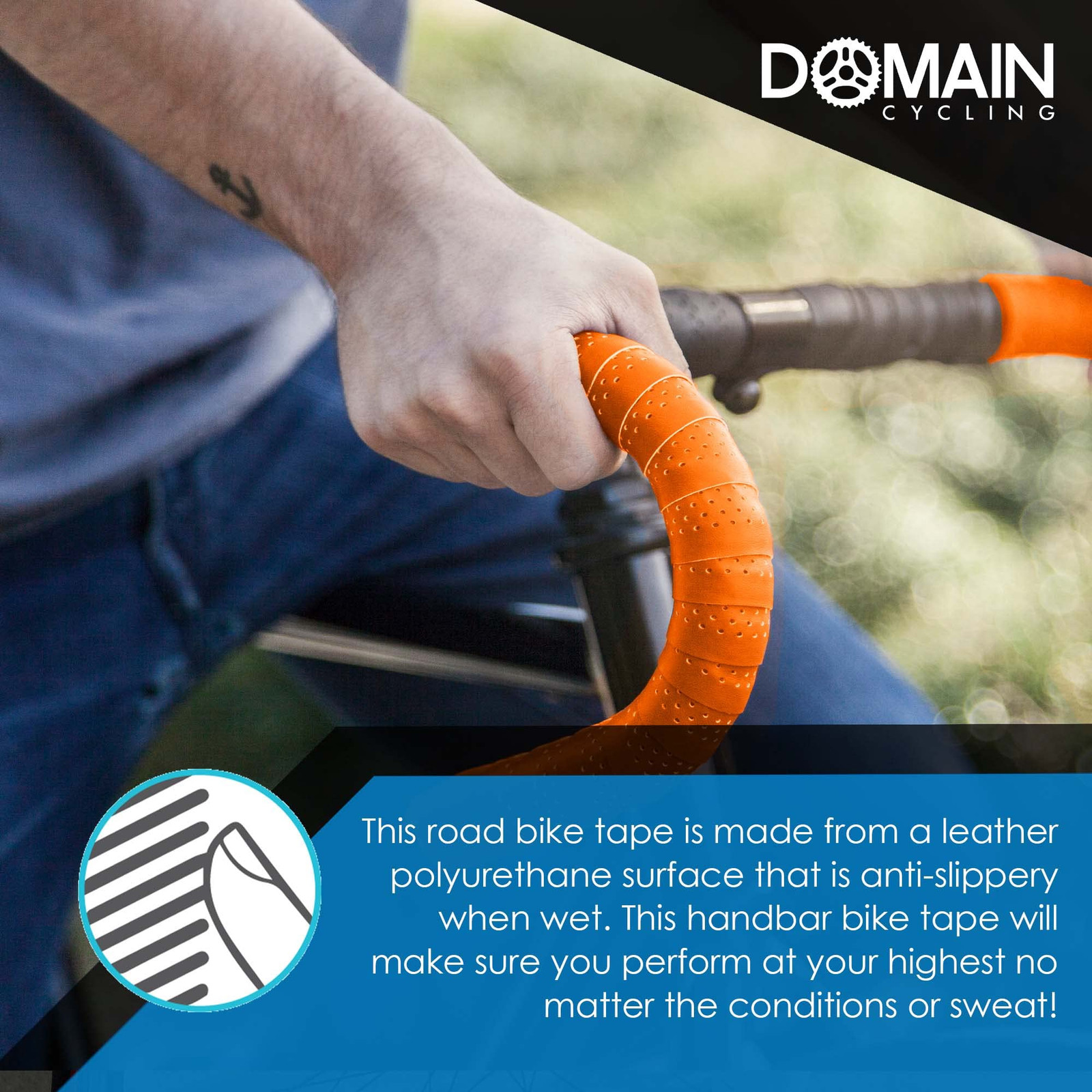 Longest Bicycle Handle Bar Tape Available: This set includes 2 rolls of grip tape for handles and holds 94 total inches of bike wrap inside its packaging. Plenty of grip tape for all your cycling needs! Customizable Set: This handlebar tape for road bikes also comes with a pair of bike end grips. Complete the look of your bike with these bike handlebar caps and bike bar tape in an array of vivid color options! Anti-Slip Polyurethane Leather: Our road bike tape is made from a leather polyurethane material that stays sticky even when wet. When racing or training, our handlebar bike tape will help you perform at your highest regardless of conditions or sweat! Cushioned Comfort Lining: Our 94” x 1.2” wide bar tape road bike set includes a cushioned EVA foam liner with Vex-Gel for a super padded grip while riding. This allows our gel bike handlebar grips to act as pads for a smooth ride. Cycling Satisfaction: We're confident you'll absolutely love your new Gel Bicycle Handlebar Tape set. If you are not happy with your purchase for any reason, we will take it back or provide a replacement.