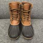 These lace-up boots are designed for snowy conditions, featuring a mid-calf shaft style with a faux fur lining for added warmth. Made of brown leather with a waterproof construction, they have a low heel and a sturdy rubber outsole suitable for outdoor activities. The steel shank provides extra support, and the boots are unisex in style, making them versatile for both men and women in size 8. Perfect for winter weather, these leather lace boots offer both comfort and protection against the elements, ideal for nature outings or casual wear. Please see pictures for details. What you see is what you get Returns accepted in same condition as received. No Exceptions Handling We will ship all orders within 1 business day of payment. Delivery US We Do Not Ship Outside of the Continental US. International Delivery We ship to international customers only via the eBay Global Shipping eBay international Program, please see the price quote in the listing. Return Policy Please see our return policy. Feedback We take our reputation seriously, we buy and sell online, so we understand the value of trust. If you are unsatisfied with your order, please contact us and we will work with you to resolve it to your satisfaction.