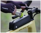 NAME:Waterproof Bicycle Top Tube Bag ITEM:K34 FABRIC:TPU WEIGHT:152g COLOR:Black SIZE:22cm*5.5cm*5.8cm(L*W*H) ACCESSORIES:Bag*1/ Velcro Straps*3/ Screws*4/ Spacers*8 Waterproof Process: Utilizes seamless welding and waterproof TPU fabric material to prevent rainwater infiltration effectively. Strap Fixing: Installed securely with three straps on the frame for easy installation, quick release, and effortless removal. Screw Fastening: The frame is firmly secured with screws, ensuring easy dismantling and fastening without any shaking. Wind-breaking Shape: Designed with a wind-breaking shape to prevent interference with the rider's legs and reduce wind resistance. Lightweight and Sturdy: Features internal hard shell support for a three-dimensional and sturdy structure, with a net weight of about 152g.