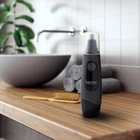 This high-end cordless battery-operated nose trimmer with bright LED light is made with a soft rubber grip finish; the light comes in handy when you need to get at those hard-to-reach and hard-to-see hairs. The lightweight, but powerful, rotary cutting system allows hairs to enter the trimmer tip from the top and also from the sides, which is very helpful for stray hairs not only in the nose but also on your eyebrows, beard, and ears Right out of the box, you will feel the difference, precision, and quality of this trimmer; it offers a smooth trim with its stainless steel high quality blades and gives you a perfect cut every time; no painful pulled hairs Our best water resistant design allows you to use this trimming tool in the shower and it makes clean-up afterwards quick and easy; it's the best trimming and cutting tool you'll ever experience from a men's clipper product This nose trimmer operates on 2 AA batteries (not included), which makes it an economically affordable way to take care of the daily trimming needs of your nose, brows, and ears