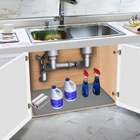 Under Sink Mat 【Applicable 33" Base Cabinets】Our under sink mat is made of food-grade silicone and designed for standard 33" cabinets and size of 31" x 19" x 0.67". 【Cabinet Protector】A must have for protecting cabinets under sink and it kept the bottom of kitchen sink completely dry. Large silicone mat with lip, covers a wide surface under the sink. Better protects cabinets from corrosion caused by water and liquid leaks, super high outer lip (0.67" raised edge) of sink mat, holds up to 1.7 gallons of water, giving you more time to address a leak. 【Easy To Clean】Made of flexible and waterproof silicone material, if the water pipe leaks or the cleaning solution leaks, just wipe it with a wet cloth or rinse it with water. 【Multi-Function Heavy Duty Mat】Under sink mat are not only for kitchen cabinets, but also for bathroom cabinets, pets, crafts and anything else to prevent stains and spills! 【Smooth Design】Smooth surface helps stable placement and easier to clean than textured mats; Cool Grey color for modern appeal; Excellent service always been our motto, if you are not satisfied with our products, you can contact us by email or return the products for a full-refund.