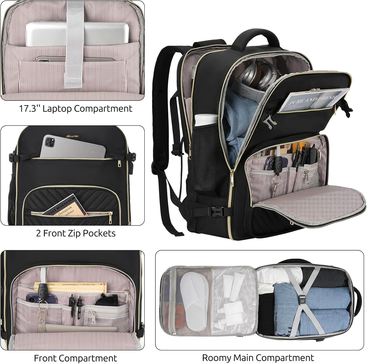 Fast Shipping Great Customer Support Satisfaction Guaranteed DESCRIPTION Shipping Shipping Shipping All domestic packages are shipped for Free (Unless other shipping method was selected during the checkout) Most items ship and arrive much sooner than the estimate delivery date. Usually within 2-3 days from payment. However, we have longer estimates to compensate for the occasional delay or supply chain breakdown. We do not accept P.O. BOXES - PLEASE PROVIDE A PHYSICAL ADDRESS Return Return Return In the event that you would like to return your purchase, we allow returns that are processed within the defined return date (the return date is to be found in the return policy/shipping and handling section) Please contact us for a return authorization and the return shipping address. Payment Payment Payment PayPal is our preferred method of payments it's the quickest, easiest and most secure way to pay for your goods or services online. PayPal offers buyer and seller protection should there be a problem. If you do not have a PayPal account, to get started and buy your first item with us is very easy. Simply click on the 'Buy It Now' button and follow the eBay checkout steps. Select PayPal as the payment method you then will be given the chance to enter your card details in to PayPal's secure checkout in order to pay for your order. Once the payment has been made, you will then be given the opportunity to make your own PayPal account to make paying for your items in the future very easy. Should there be a problem with payment please do let us know. Feedback Feedback Feedback Customer satisfaction is very important to us. If you have any problem with your order,please contact us and we will do our best to make you satisfied, please do not leave a negative feedback before we resolve your problem. We guarantee that your issue will be solved quickly. As long as you are happy with your purchase of , please leave us a positive feedback. Your feedback is very important to us it affects our search placement on eBay. We will leave a positive feedback for you in return automatically once we receive your feedback. Contact Us Contact Us Contact Us If you have any queries, please contact us via ebay. We usually respond within 24 hours on weekdays. Thank you for visiting our ebay store! 30L CAPACITY FOR ORGANIZED TRAVEL - Journey with your travel essentials for 3-5 days, neatly organized in this versatile carry on backpack. Its luggage-style main compartment, separate laptop compartment for your 17’’ laptop and 12.9’’ iPad, and multi-pocket zipper front pocket offer unmatched convenience, one side pocket for easy access to a water bottle or umbrella. AIR TRAVEL MADE EFFORTLESS - Glide through airports with ease! This carry on bag, sized at 18.5x12.8x7.5 inches, aligns with the maximum size requirements for personal items allowed on most IATA flights. The 180-degree opening design for compartments expedites security checks, making your airport experience as smooth as your travels. COMFORT & PROTECTION FOCUSED - Enjoy ergonomic comfort with padded shoulder straps and a breathable mesh back. The backpack also features a foam-padded laptop compartment for extra safety of your electronics. Featuring a unique wet pocket, can place wet towels or sweaty clothes. SAFETY AND CONVENIENCE - Travel with peace of mind thanks to an anti-theft pocket and a luggage strap. The anti-theft back pocket is suitable for valuables such as wallet, passport, ID card. The luggage strap can attach the backpack to your suitcase. With a USB charging port(POWER BANK IS NOT INCLUDED) and a built-in data cable, keep your devices powered on the go. LIGHTWEIGHT YET RUGGED - Crafted from tear-resistant, water-resistant lightweight polyester, this travel backpack for women weighs a mere 2.16 pounds. Complemented by exquisite craftsmanship, strong explosion-proof metal double-way zippers and reinforced stress points. This backpack withstands the rigors of travel. Waterproof Travel Backpack for Women, Carry-On Approved, 17" Laptop Bag Click here to see description Fast Shipping Great Customer Support Satisfaction Guaranteed DESCRIPTION Shipping All domestic packages are shipped for Free (Unless other shipping method was selected during the checkout) We ship within two business days of payment, usually sooner Standard FREE shipping takes between 3-5 business days Expedited shipping takes between 2-3 business days Overnight shipping takes between 1-2 business days We do not accept P.O. BOXES - PLEASE PROVIDE A PHYSICAL ADDRESS We Ship Globally using ebay's GSP, the item is sent to a logistic center in KY and shipped from there to the rest of the world. International customers are responsible for all duties and taxes Contact your local authority for questions related to the amount of duties or taxes you will be responsible for Return In the event that you would like to return your purchase, we allow returns that are processed within the defined return date (the return date is to be found in the return policy/shipping and handling section) Please contact us for a return authorization and the return shipping address. Please contact us for a Return Merchandise Authorization (RMA) number. We advise you to use a reputable carrier service when returning your goods. Please pack all returns appropriately. We ship globally Via eBay's global shipping program (GSP). Thus we don't cover returns for items shipped globally. Buyers returning such items will be refunded ONLY for the item's cost and not for the shipping. please check the Voltage information and make sure it matches the one in your country. In case it's not stated in the description, do ask us. Payment PayPal is our preferred method of payments it's the quickest, easiest and most secure way to pay for your goods or services online. PayPal offers buyer and seller protection should there be a problem. If you do not have a PayPal account, to get started and buy your first item with us is very ea