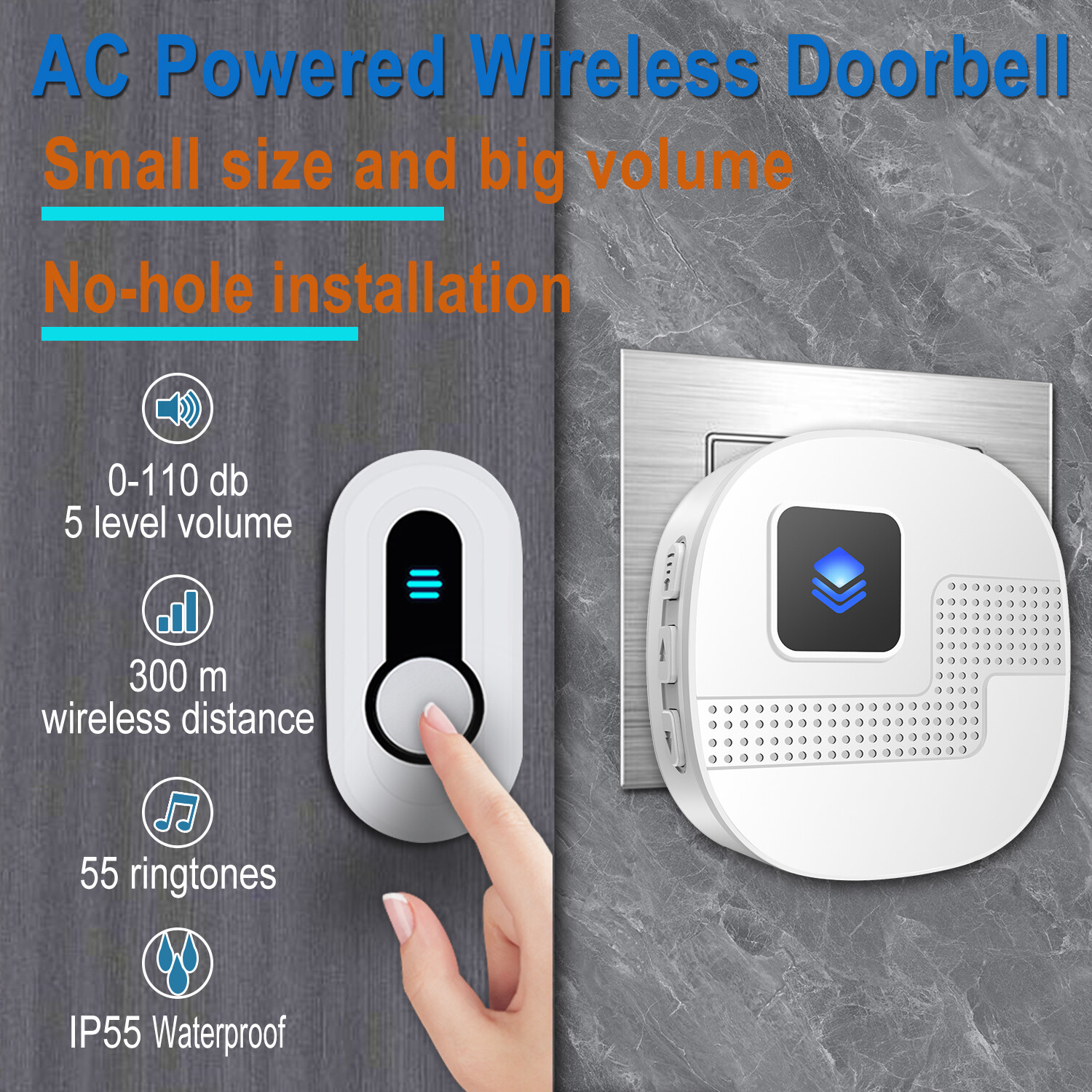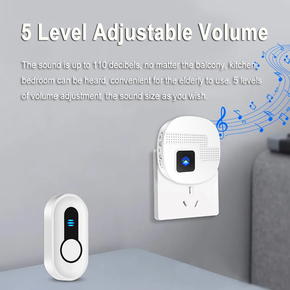 Wireless Doorbell -Waterproof Door Bell Chime Operating at over 1300-ft Range 58 Adjustable Melodies 5 Volume Levels & LED Flash, Doorbell Alarm kit for Home/Classroom (2 Buttons+2 Receivers) Wireless Doorbell -Waterproof Door Bell Chime Operating at over 1300-ft Range Wireless Doorbell •LIKEPAI • Doorbell Chime Kits with 2 Transmitters 2 Receivers • Waterproof • Operating at 1000ft Range • 22 Ringtones • 5 Volume Levels • LED Flash • Door Bell for Home Classroom Wireless Doorbell -Waterproof Door Bell Chime Operating at over 1300-ft Range 58 Adjustable Melodies 5 Volume Levels & LED Flash, Doorbell Alarm kit for Home/Classroom (2 Buttons+2 Receivers) Weatherproof Doorbell & Easy Set Up - IP55 waterproof rating of the doorbell with a minimalist design and simple operation. It is very easy to install without wire, the button is attached to the exterior wall and the plug-in doorbell receiver is plugged in the socket and ready to use Ultra Reliable Launch Distance - 1,300FT reliable wireless signal coverage (Unobstructed space) anti interfering with your home electronics, ensuring you never miss your visitors or packages again, Durable and easy to obtain transmitter battery to ensure a superior user experience Various Bell Chimes & Adjustable Volume - 55 ringtones for different options, 5 levels of adjustable volume and clear melodies that can be heard even if you are in other room and floors away Loud Doorbell & LED Flash - The loud 110dB doorbell with flashing LED is designed for the hearing impaired and elderly, and can of course be set to 0 mute when you don't want to be disturbed Expandable - If you want to expand the doorbell system to your home, you can add a receiver and transmitter of the same model. Instructions on how to change your ringtone are on the details page or in the manual