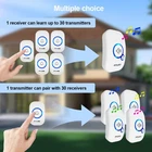 Wireless Doorbell Home Welcome Chime Alarm 32 Tunes Switch Waterproof Button Villa Store Hotel Entry Led-Light Smart Doorbell It can also work with our P819,HW7 Pir sensor and D025 door sensor.Plz click picture below: Note:The alone doorbell button does not work, it work with the receiver. Introduction: This smart wireless doorbell adopts advanced wireless transceiver technology, high-quality voice processing technology, up to 32 music, and its performance is stable and reliable. Doorbell, anti-theft, welcome multi-purpose. Suitable for home, villa, shop, hotel,and office etc. Eye-catching backlight flashes when someone pushes the doorbell. Particularly suitable for the elderly, pregnant women, and the deaf. Function: 1. 32 songs optional.( for doorbell button) 2. Doorbell, alarm, welcome multi-purpose. 3. Can learn up to 30 transmitters, no loss of power. 4. Support 1527/2262 code chip.(button) 5. Volume 4 adjustable.(No mute mode) 6. Support multiple doorbell transmitter, suitable for large house. Smart Wireless Doorbell When you press the button,doorbell will receive the signal and you will hear the sweet tunes immediately. Touch Button Daily Life Waterproof Warm Prompt: In order to ensure that the doorbell button can be used normally for a long time, please place it under the eaves or buy a rain cover. 32 Songs Optional 32 ringtones for your option,you can select regularly,and don't feel bored.Avoid the same ring with the neighbors. Easy to install,we have EU,US,UK,AU Plug Just plug the receiver into power socket and Stick the button on the door. Strong signal ,150m long distance Transmission Long operating range can be up to 500ft(150m) in open space,great for large house including villas, apartment, offices, shops, warehouses, etc. Infrared Detecter Welcome Mode: When the infrared detects a moving object will send a signal to the doorbell, the doorbell emits a welcome sound. This mode is usually used in store to welcome customers. Pir sensor power supply:USB cable charging or 2 AAA batteries Door Sensor Alarm Instantly Mode: Install the door sensor on the door or window. When someone pushes open the door and window, the doorbell receives the signal and will alarm immediately. DIY Your Own Set Technical parameter: 1. Receiver Working voltage: AC 100-220V 2. Working current: <100mA 3. Wireless frequency: 433MHz 4. Working temperature: -10 ° C -50 ° C 5. Wireless distance: 150 meters (open space) 6. Button's battery: 1pcs 23A 12V battery or CR2032 battery How to use our doorbell? 1. Install the battery on doorbell button Please install 1pcs 12V 23A or CR2032 battery on the doorbell button after receiving the doorbell, the battery are not included when we arrange shipment. 2. Learning the button into doorbell receiver Press the doorbell receiver "music" and "volume" key together, then LED will light on and this time press our doorbell button ,the LED will sound once and then press the "volume"key to finish the learning (you can check video in our link). Doorbell Size: Payment Delivery details Returns Contact Us Feedback Payment 1.We accept PayPal only. 2.Payment must be received within 7 business days of auction closing. 3.We ship to your eBay or Paypal address. Please make sure your eBay and Paypal address is correct before you pay. Delivery details We try our best to ship out same day for payment cleared before 5.00 PM (Pacific Time) , Order placed on weekend or holiday will be shipped on Monday or next working day. Below is the approximate delivery time to different countries (just estimated, not guaranteed): 7-25 working days to buyer in USA. Returns 1.We offer 30 days return policy. Please contact us within 30 days from the date you receive your order if you have any issues with the product and want to return. 2.All items must be returned in the original packaging and you must provide us with the tracking shipping number, specific reason for the return, and your eBay ID. 3.We will refund you FULL WINNING BID AMOUNT, upon receipt of the item in its original condition and packaging with all components and accessories included, AFTER BOTH Buyer and Seller cancel the eBay transaction. Or, you can choose to get a replacement. Contact Us All communication is done through EBAY MESSAGES ONLY. If any question, please feel free to contact us via "Ask seller a question" or "Contact Seller",We try our best to reply to your emails as soon as possible, due to high volume of daily incoming emails and time zone difference, we may not be able to reply your emails immediately. Please allow 1-2 business days for us to response. Feedback Feedbacks: When you receive the item and satisfied with the product, please leave us positive feedback. If for any reason you are not satisfied with your purchase from us, please contact so we can get to work and resolve this issue for you. Please don't leave neutral or negative feedback without giving us an opportunity to try and make it right. Our goal is to ensure a happy shopping experience with us. Your Positive feedback is very much appreciated!