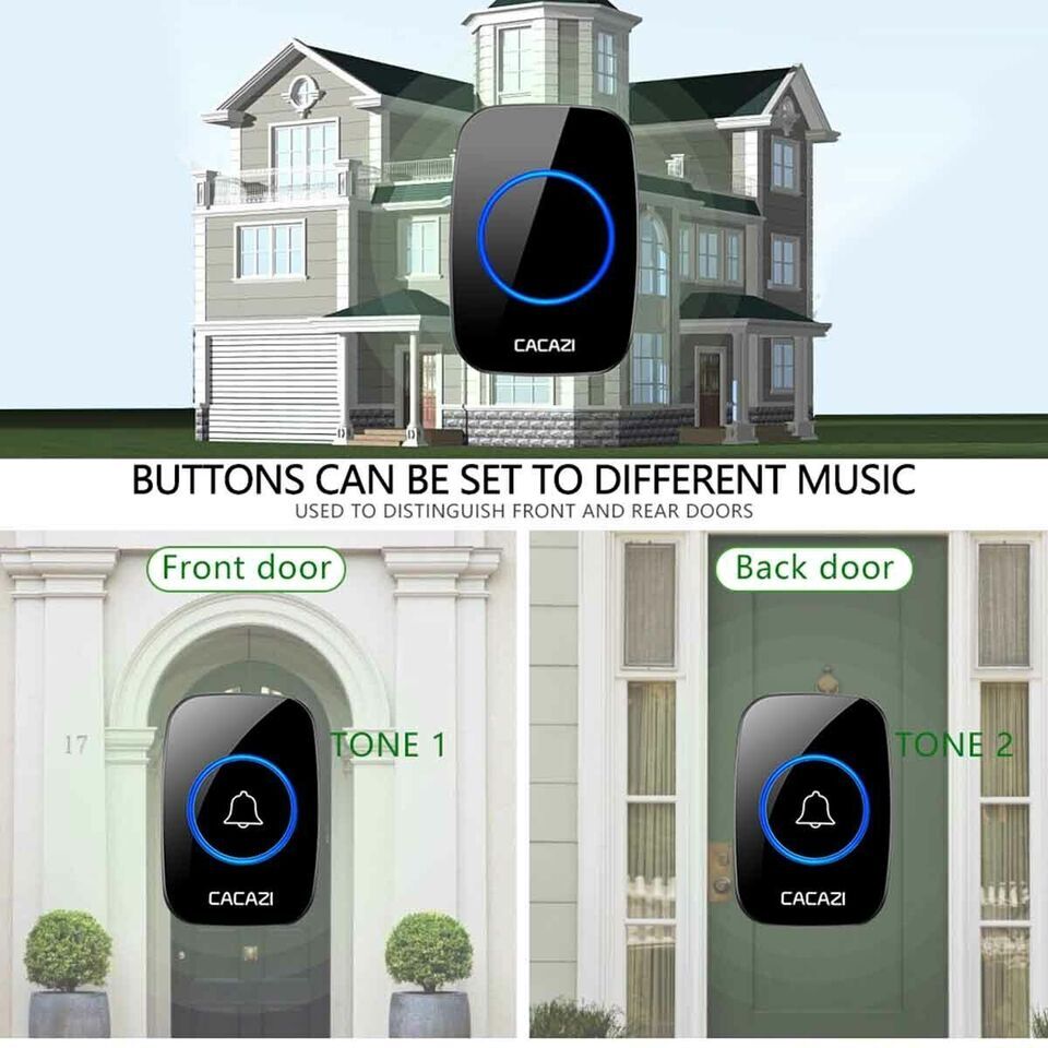 Features: High Quality: Our wireless doorbell is made of ABS material, which is non-toxic, harmless and recyclable, the material can keep itself against from dust, rain and high temperature. It has no electromagnetic radiation, so it’s perfectly safe for pregnant women. The levels of protection of remote transmitter button is rated IP44 waterproof, it works perfectly outdoors. Radio Operating Range: The doorbell receivers are highly sensitive, 1/2 transmitter button triggers 1/2 chime units and the radio waves is covered all over the house and won’t interfere each other, the range of action is up to 1000ft in the open area ensures you can hear the bell and answer the door or sign for the package in time. 36 Different Tunes & 4 Volume Levels: Our wireless doorbell is provided with 36 different ringtones with 4 levels adjustable volume from 20db- 80db. You can enjoy the tone music and set your favorite tones as you wish. Energy Saving & Long Life: Ultra-low power consumption design, Sustainable Use of Energy. The transmitter battery can be used for over 15 months. Our wireless doorbell material is very durable, it can bear over 100 thousand times click. Installation & 100% Guarantee: batteries required for the doorbell receivers, Remote transmitter button can be fixed at the doorframe with the attached adhesive tapes or screws, and anchors which are included in the package. Specifications : Maximum 1000ft operating range in open area 36 unique ringtones 4 volume levels LED indicators Transmitter battery: A23 12V Alkaline Battery Volume range: 25 to 80dB Dimension: Receiver: 2.56 x 3.74 x 0.94in; Transmitter: 2.01 x 2.95 x 0.79in Easy Installation: Install Transmitter at your door (Doorbell) Install Receiver (Speaker) into your outlet anywhere you wish. Test doorbell, set ring tone, set volume level. Enjoy! Package includes: 1 x Wireless Doorbell Chime Waterproof Receiver Adjustable Volume 1000FT Kit (1 Chime Speaker(battery not inclued ), 1 Doorbell (battery inclued ) Located in: Flushing, New York, 11354 United States