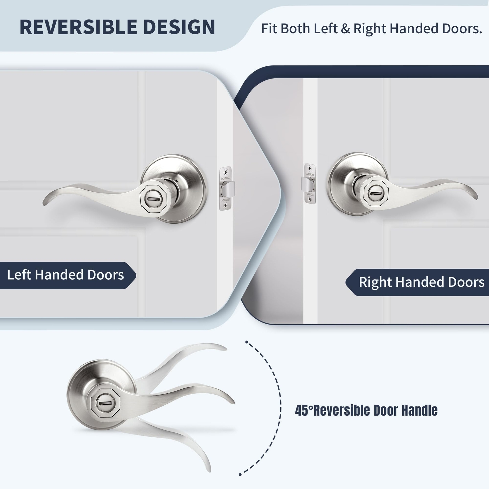 【Classic Wave Style Design】 The comfortable and elegant design provides a comfortable grip and safe operation. Satin Nickel finish is suitable for both traditional and modern decorative styles, KEYLESS Privacy Function ideal for bedroom, bathroom, or living room adding a touch of sophistication to your door. 【Reversible Lever】 Wave style reversible lever flexible for both left-hand and right-hand doors. The interior lever can be removed from the rosette assembly and switched with the exterior lever, preventing the levers being upside down after installation, ensuring a seamless appearance. 【Versatile Standard Size】Fit all door thicknesses from 35mm to 45mm (1-3/8" to 1-3/4"). Adjustable latch slides easily into place without tools, allowing it to fit standard doors with 2-3/8" or 2-3/4" backset. Its round rose cover has a diameter of 2-3/5” (65mm), ensuring a perfect fit with your door. 【Easy Installation】 With no need for specialized tools or expertise, anyone can install this handle in just a few minutes only a screwdriver. This ensures a secure and reliable lock in place without any hassle or inconvenience. 【Trustworthy Quality】Constructed with excellent quality materials, handle meets the ANSI/BHMA 3 certified. Ideal choice for those seeking reliable home protection. Team will be at your service 24 hours a day.