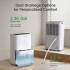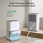 Product Feature Powerful Moisture Removal Removes up to 80 / 120 / 150 pints of moisture per day (under 95°F, 90% RH conditions), ideal for areas ranging from 5,000 Sq. Ft – 7,000 Sq. Ft. Adjustable humidity settings from 30% RH to 85% RH, making it perfect for basements, large rooms, homes, offices, bedrooms, kitchens, storage areas, laundry rooms, dorm rooms, apartments, and crawl spaces. Energy Star Certified & Cost-Effective ENERGY STAR® certified, this dehumidifier efficiently removes excess moisture while reducing energy consumption, helping you maintain an ideal indoor climate without increasing your electricity bill. Smart Touch Control & Auto Mode Equipped with an intelligent control panel, this dehumidifier allows easy humidity adjustment. The digital display shows real-time humidity levels for easy monitoring. Simply set your desired humidity level, and the unit will automatically adjust to maintain a comfortable environment. Includes a 24-hour timer for preset operation, enhancing energy efficiency. Quiet Operation & Portable Design Designed for low noise operation, this dehumidifier ensures a quiet and comfortable atmosphere. The oscillating fan speeds up moisture removal while keeping the noise level low. Its lightweight, compact build with caster wheels makes it easy to move from room to room. Reliable Customer Support We are committed to providing exceptional customer service. If you have any questions, feel free to contact us—we’ll respond within 24 hours! Product Details: Floor Area: 5,000 Sq. Ft – 7,000 Sq. Ft Color: White Special Feature: Auto, Manual, or Pump Drainage (Optional) Daily Moisture Removal Capacity (95°F, 90% RH): 80 / 120 / 150 / 150 Pints (with Pump) – The built-in pump allows water to be drained further away, such as through a window or down the drain, eliminating the need for frequent manual drainage. Ideal for environments where continuous drainage is required, but it's inconvenient to place the drainage hose at a lower level. What's in the box? Dehumidifier x 1 Visible Water Tank x 1 Drain Hose x 1 Detachable & Washable Filter x 1 Power Cord x 1 User Manual x 1