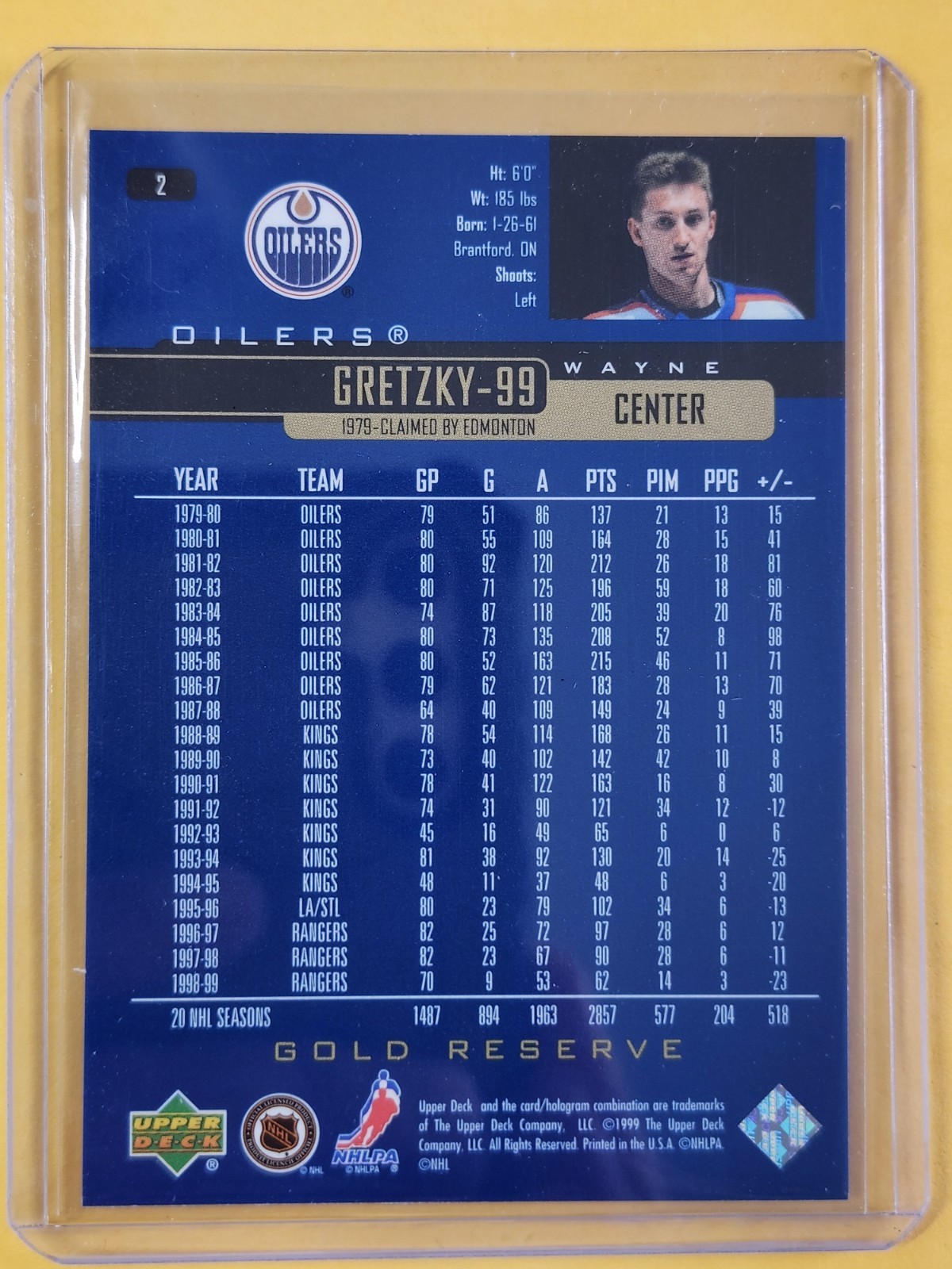 Plongez dans l'histoire du hockey avec la carte Upper Deck Gold Reserve de la légende Wayne Gretzky, édition 1999-2000, numéro 2. Cette pièce de collection, issue de l'ensemble emblématique de la même année, représente l'exceptionnel joueur des Oilers d'Edmonton, immortalisé sur une carte qui saura ravir les amateurs et collectionneurs du sport. Non signée, cette carte est un incontournable pour ceux qui cherchent à enrichir leur collection avec un article symbolisant l'excellence sur la glace. Appartenant à la prestigieuse Ligue Nationale de Hockey, elle est un hommage au talent incontesté de Gretzky et une valeur sûre pour les passionnés de hockey sur glace.