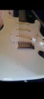 The "Wayne's World Fender Squier 92-93" is a professional-level electric guitar with a solid white body. This 6-string guitar is a model from 1993 and was manufactured in Japan. It features a right-handed configuration and is a part of the Fender Squier brand. The guitar is likely a limited edition model inspired by the movie "Wayne's World," known for its distinctive design and potentially collectible status. Party on.