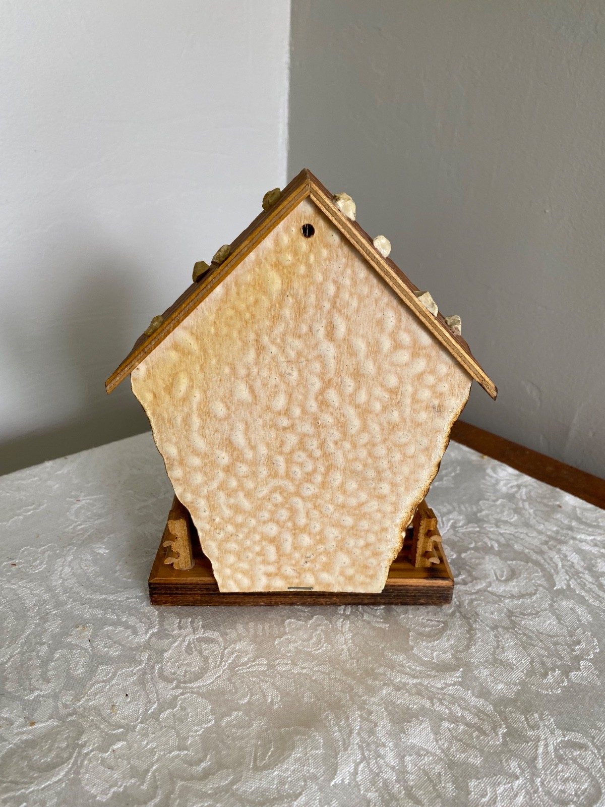 The Wayside Shrine Mother & Child is a beautifully handcrafted wooden statue depicting the Virgin Mary with her child. This piece of religious art captures the essence of Christianity and the spiritual bond between mother and child and has a puncture in back for wall hanging, or it can adorn a cherished corner in your home. It is a collectible item that would make a meaningful addition to any Christian's home or place of worship, serving as a reminder of faith and love. The figurine has slanted sides and curved edges; it measures 7” high and 6” wide. We inherited this piece from my husband’s aunt. She and her husband traveled a lot. We’re not sure whether this beautiful figurine was purchased in Germany or Italy.