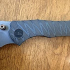 Second owner, purchased from Jared Neeve of Neevesknives. Never carried or used by me. Sharpened once to a near mirror polish. We Knife High Fin 20cv blade flames tiger stripe titanium handle. *all sales are as is*