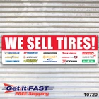 We Sell Tires Banner Auto Repair Tire Dealer Service Bay Garage Banner 13 oz Indoor/Outdoor Vinyl Full Color High Definition Imprint Hemmed Finished Edges Grommets approximately every 2ft. Customization Available If you would like to list different tire brands, message me with the brands you would like to see on the banner and I will swap them out and send you a proof prior to printing (maximum 15 brands)