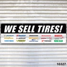 We Sell Tires Banner Auto Repair, Tire Dealer, Service Bay, Garage Banner Sign 13 oz Standard Indoor/Outdoor Vinyl • Excellent quality • High Definition Print • Hemmed edges for durability • Grommets in 4 corners for hanging 15 oz Premium Indoor/Outdoor Vinyl • Woven, not knit • More durable and better tear resistance • High Definition Print, Color and text will appear sharper • Hemmed edges for durability • Grommets in 4 corners for hanging