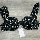 We Wore What Bikini Top XL Underwire Cups, Hook Back, Wide Pleated Shoulder Straps, Black Rose Bud Floral, Lightly Padded, Sweetheart Neckline, Stretch Strap Width 31” Nylon Spandex WeWoreWhat